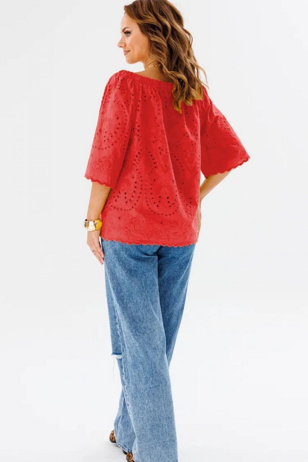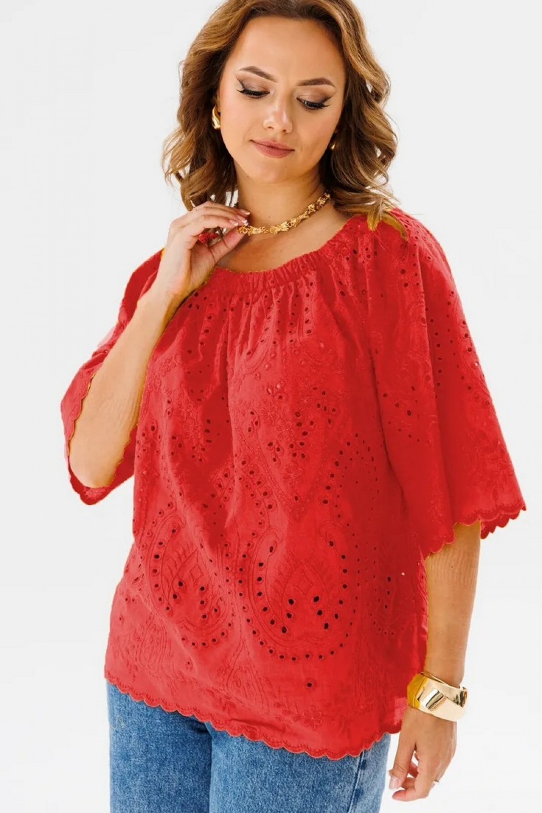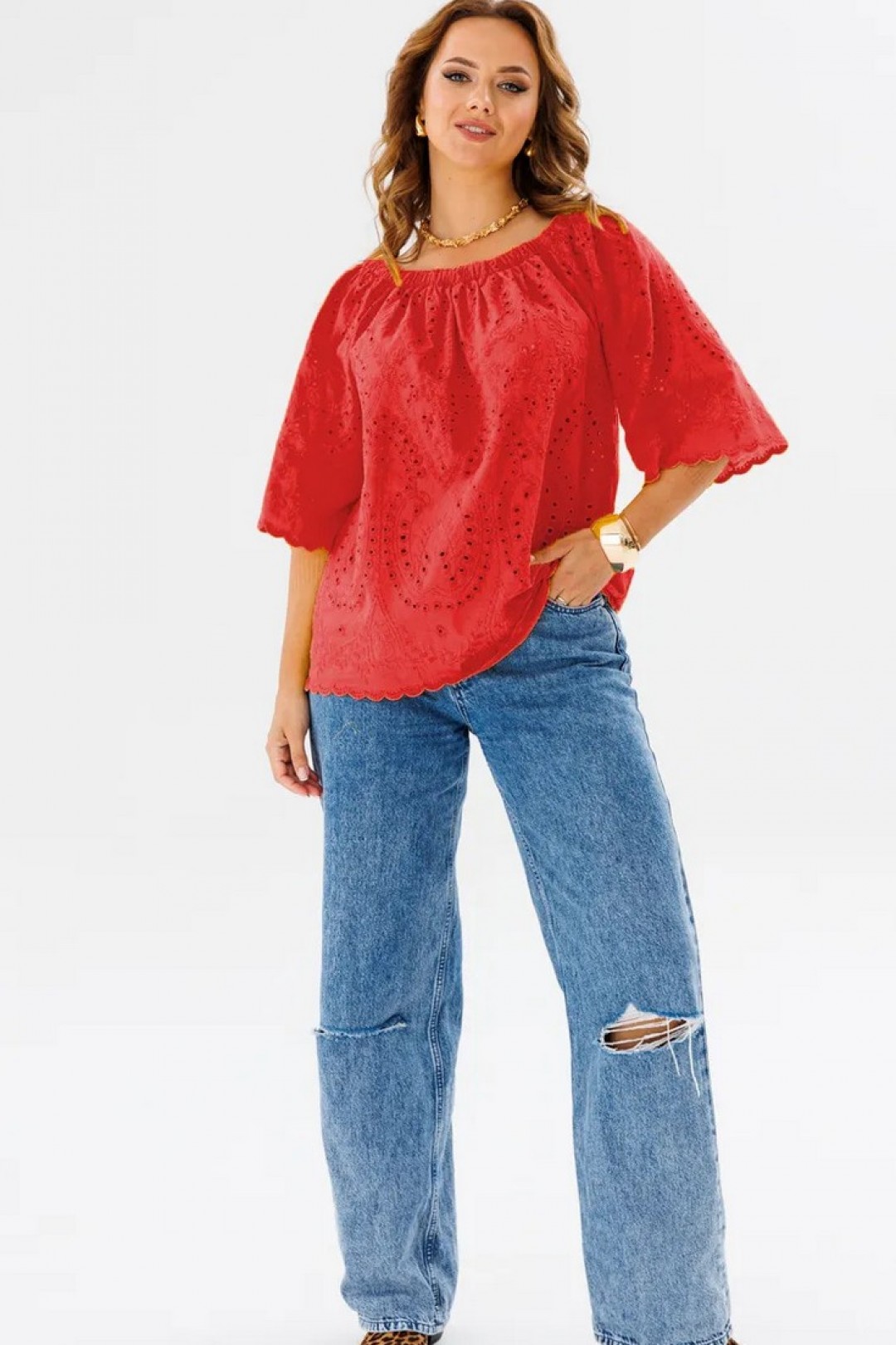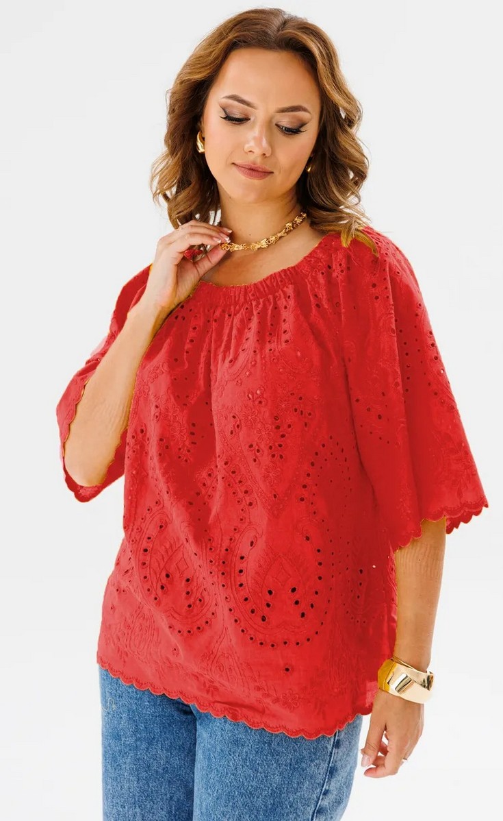 Летняя женская блузка из ткани "шитье" и с рукавом. Блуза легкая, модная, идеально подходит на лето, позволит выглядеть ярко и элегантно, а чувствовать себя максимально комфортно. Красивая модная базовая оверсайз блузка больших размеров имеет свободный крой и не сковывает движения, обеспечивает оптимальную посадку практически на любую фигуру. Невесомая блузка позволит легко создавать как нарядные, так и базовые образы на каждый день.