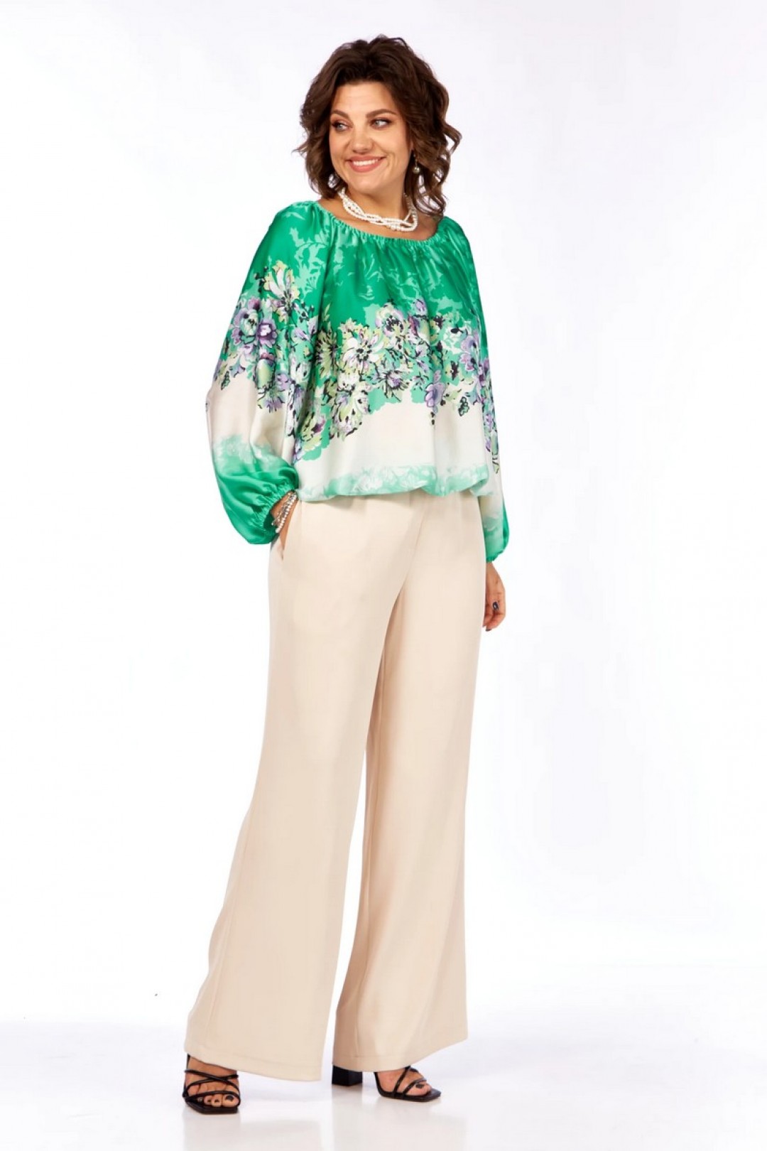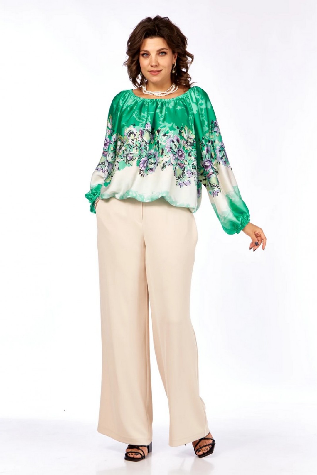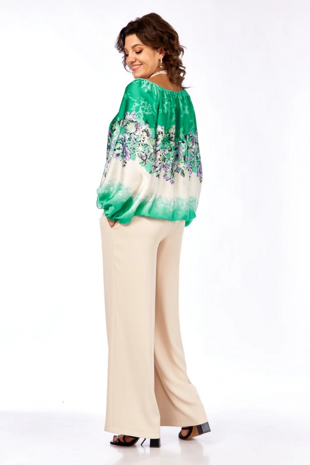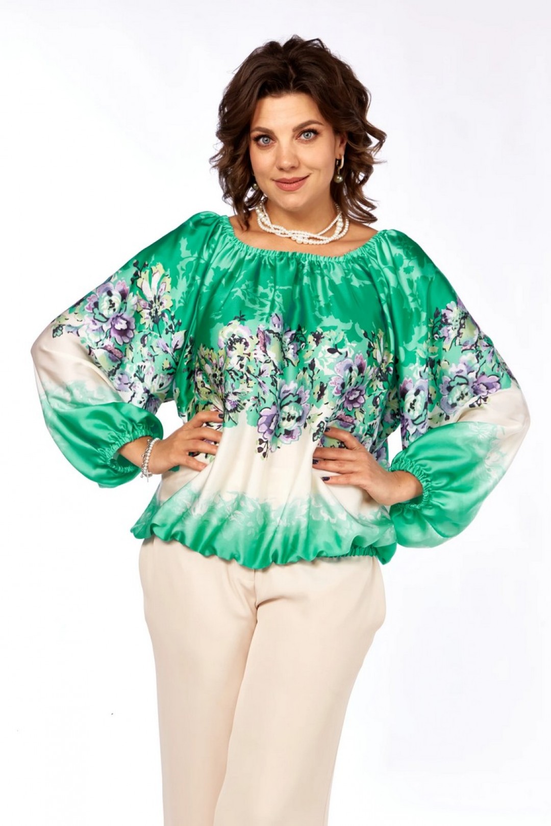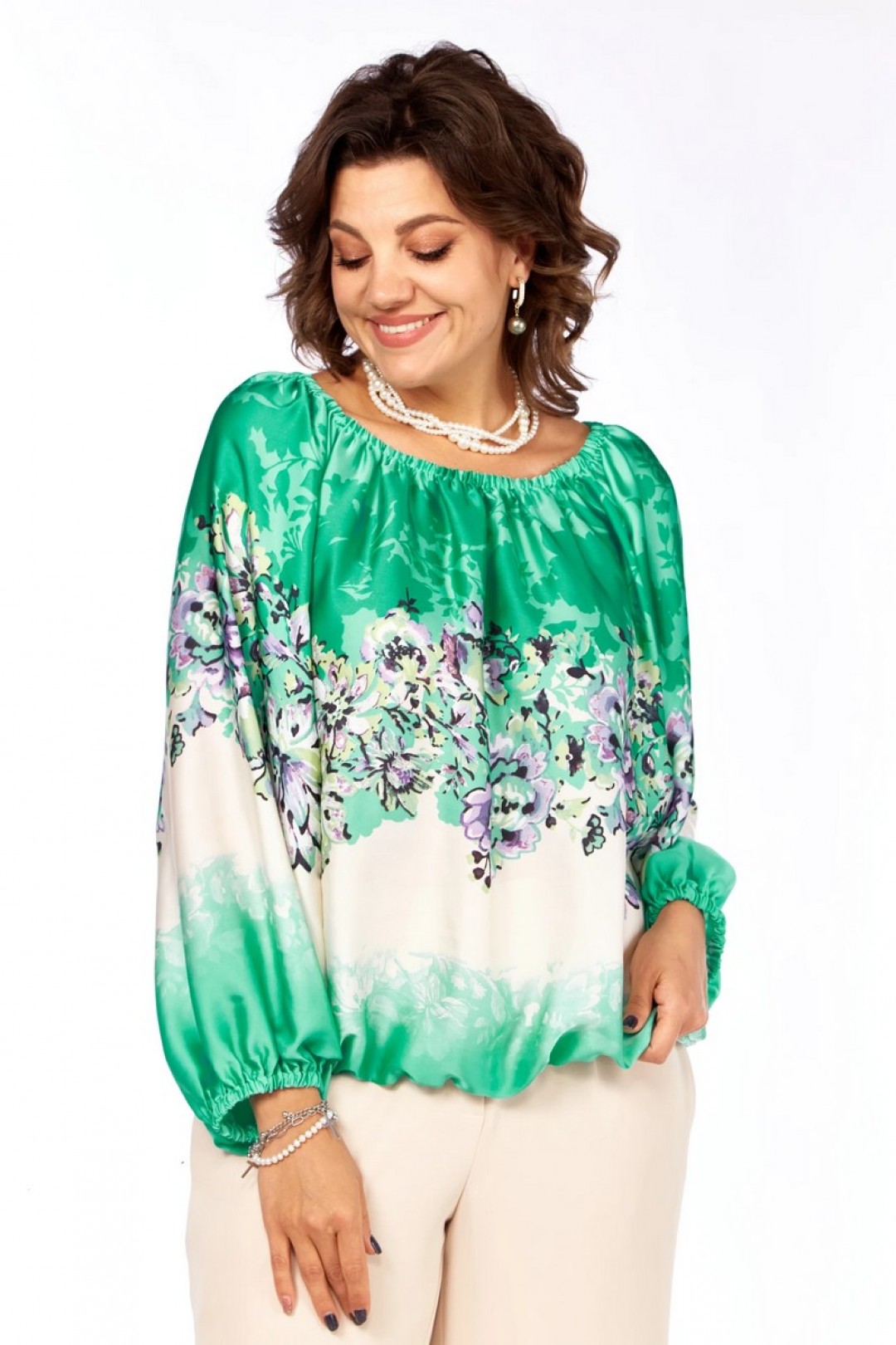 Описание:Нарядная блузка из богатого атласа свободного силуэта с рукавами реглан. Верхний срез блузки на резинке, что дает возможность изменять горловину. Широкий рукав реглан. Низ рукава на резинке.