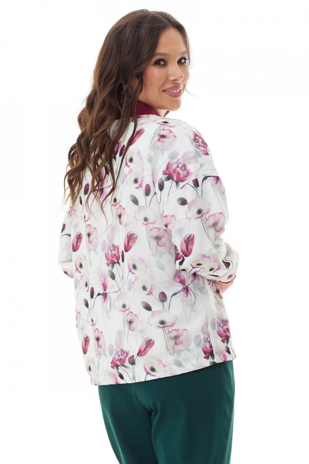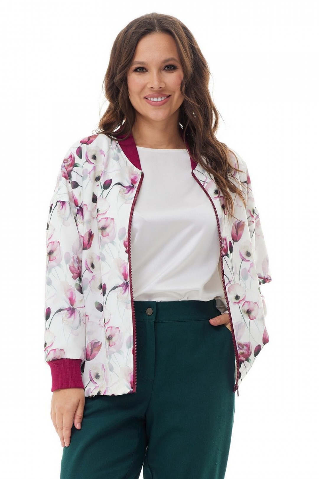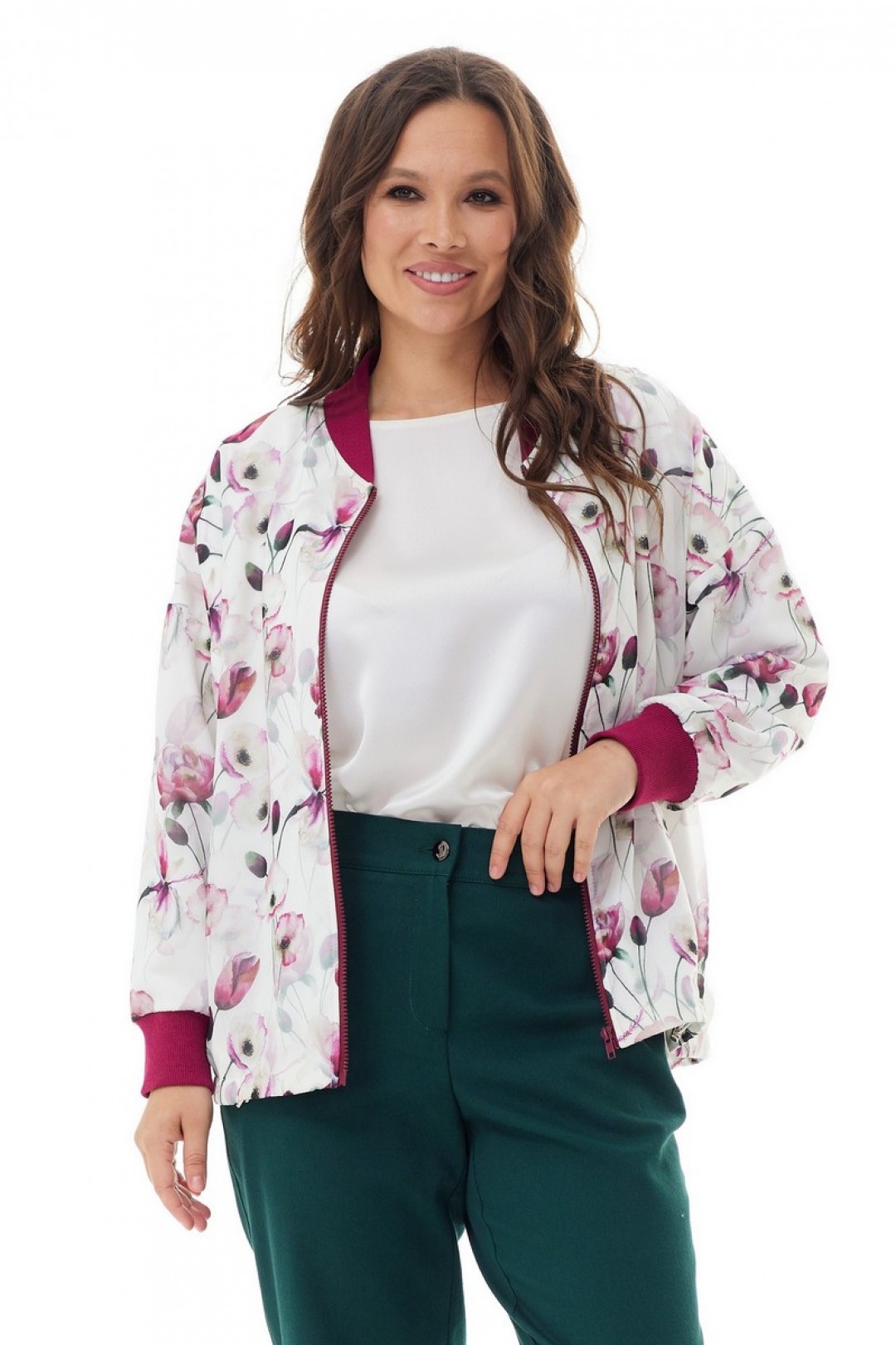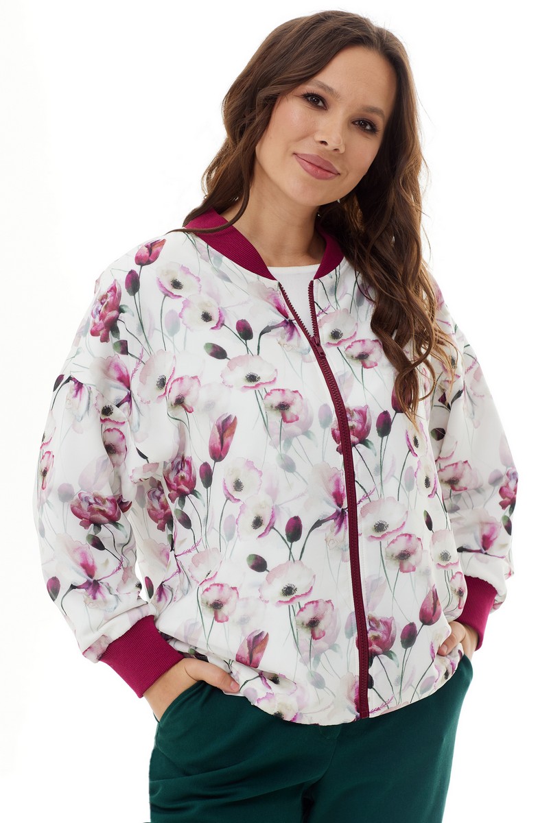 Стильный и невероятно красивый бомбер свободного кроя с центральной застежкой на молнию. Выполнен из однотонного качественного трикотажного полотна(футер) с наложенным на него шифоновым полотном с принтом. Рукав длинный, втачной, слегка спущен. Дополнен притачной манжетой. Горловина обработана стойкой. Для придания объема по низу бомбер дополнен скрытой кулиской с эластичной тесьмой и фиксаторами Длина бомера от плечевого шва Длина рукава. Длина бомбера от плечевого шва 63см. Длина рукава 60см.