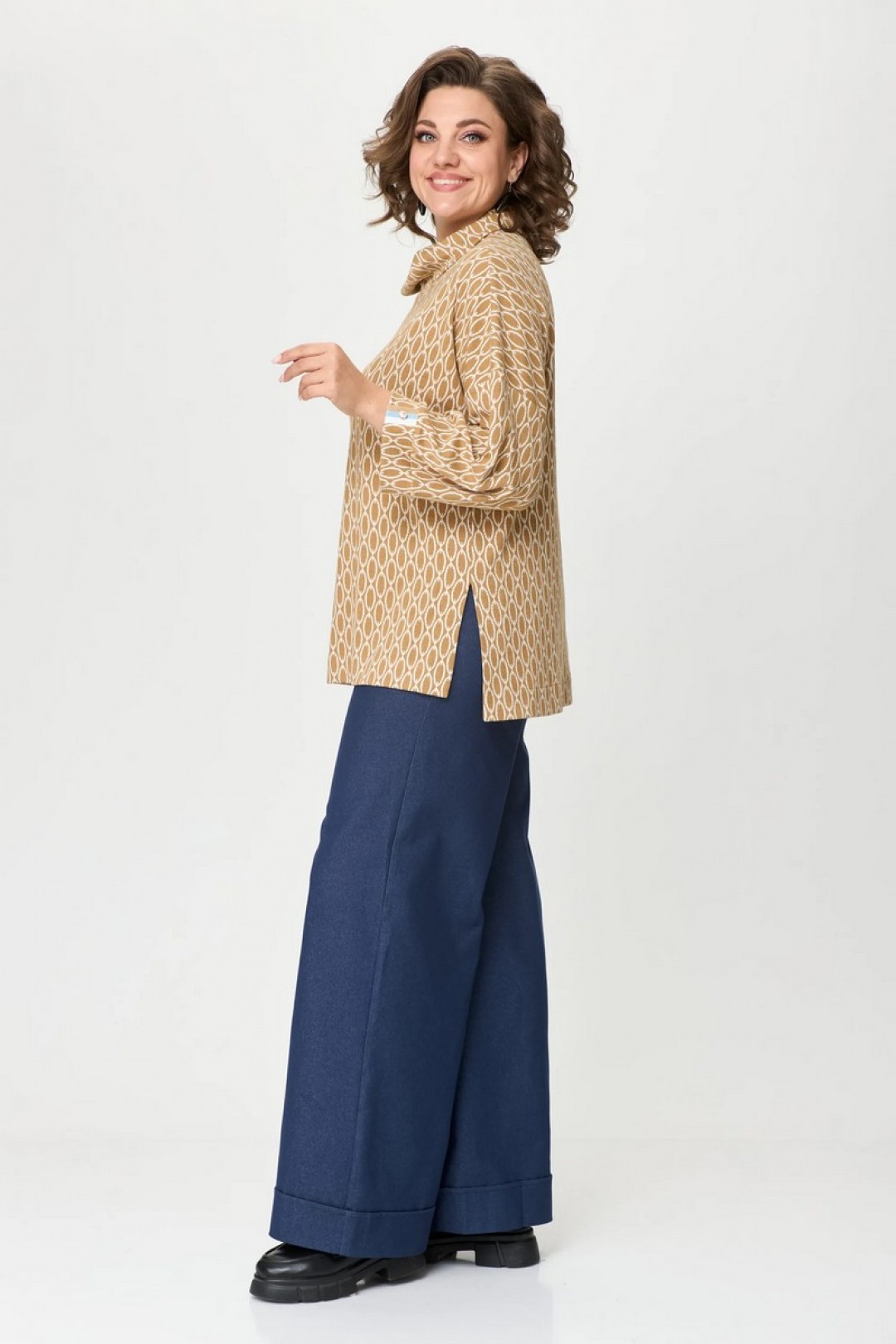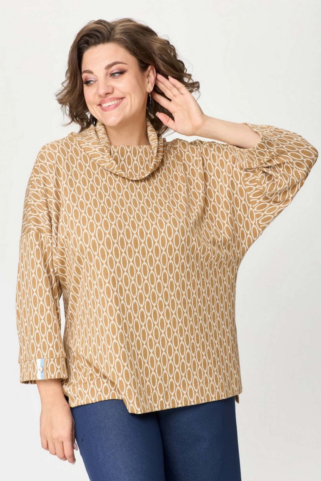 Эффектное и актуальное дополнение для повседневного гардероба — этот трикотажный женский джемпер. Он станет идеальным выбором для тех, кто ценит комфорт и стиль. Трикотаж обеспечивает мягкость и уют, а приятный состав делают его незаменимым в наступающем сезоне. Кофта свободного силуэта с рукавом 7/8 "летучая мышь" создает эффектный вид благодаря спущенным плечам и удлиненной спинке. Изящность изделию придает воротник-хомут, который добавляет уюта в образ. Комфорт обеспечивают боковые разрезы по бокам изделия, позволяя свободно двигаться без стеснения движения и с легкостью можно носить джемпер как навыпуск, так и заправленным. Джемпер этой модели также станет подходящей основой для праздничного вечера: декорировать можно аксессуарами на ваш вкус или оставить всё минималистично — базовая структура позволяет экспериментировать без риска прогадать со стилем.
