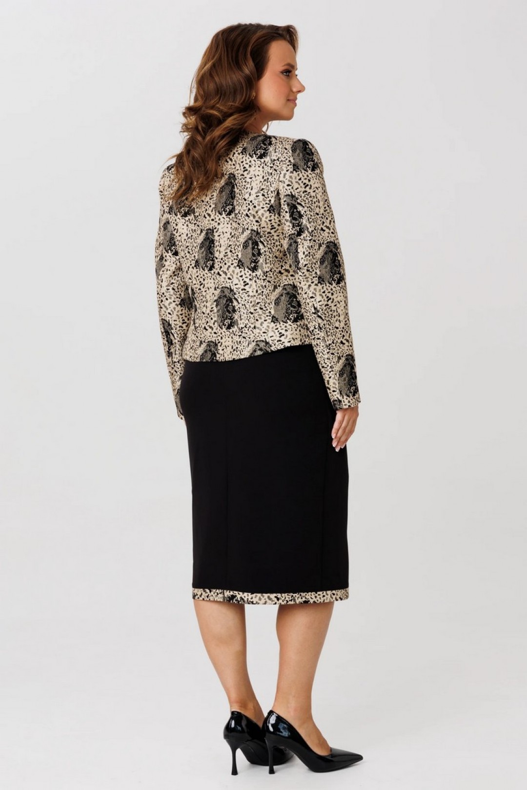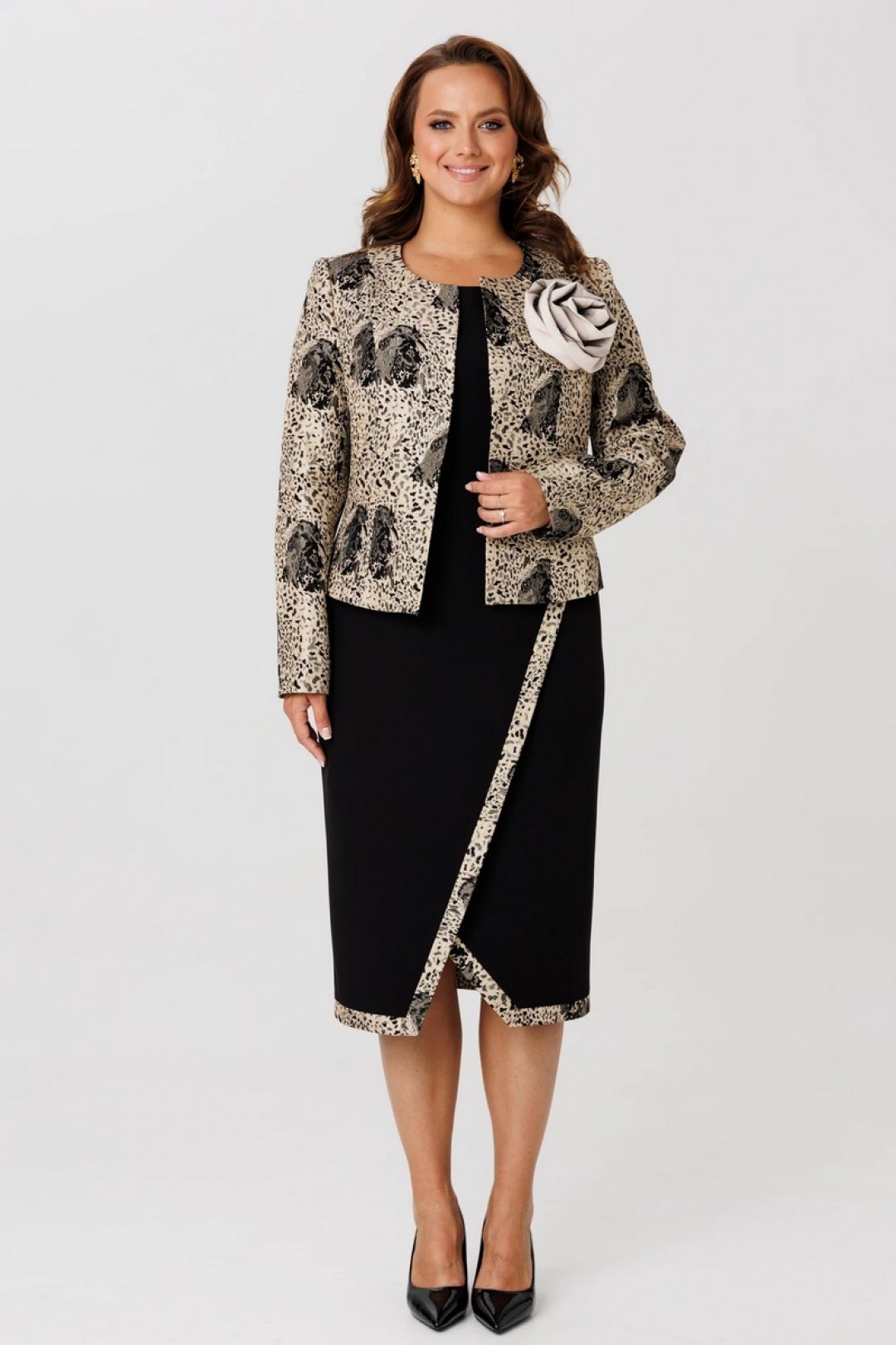 Элегантный женский комплект, состоящий из жакета и платья.