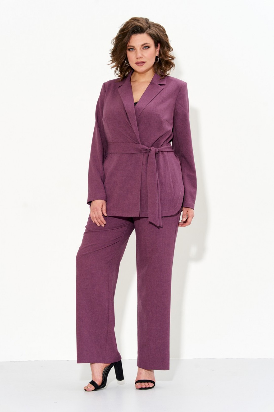 Костюм женский 2-ка с брюками и жакетом выполнен из легкой костюмной ткани. Жакет двубортный прямого силуэта без подкладки со втачными рукавами, в боковых швах функциональные карманы, застежка на петли и пуговицы. Брюки прямого кроя на поясе-обтачке, по спинке накладные карманы, застежка на молнию, петлю и пуговицу. В комплекте съемный пояс из основной ткани.