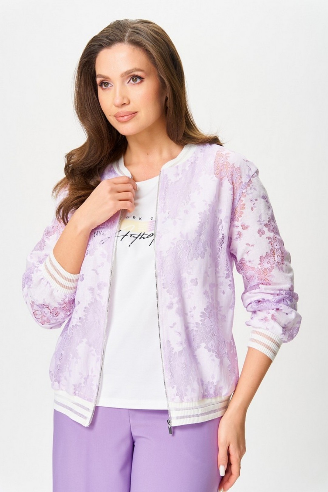 Комплект женский, состоящий из бомбера, майки и брюк.