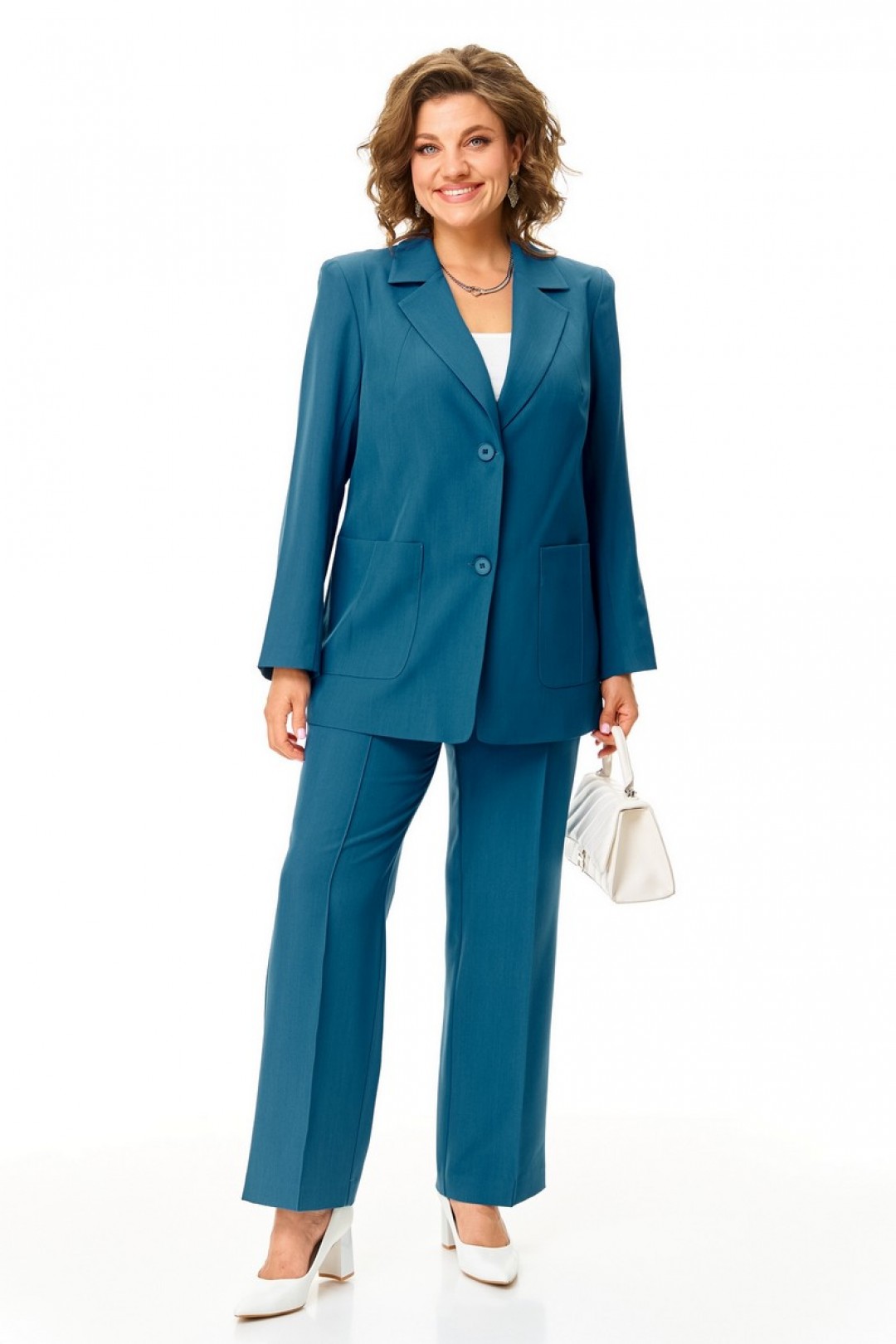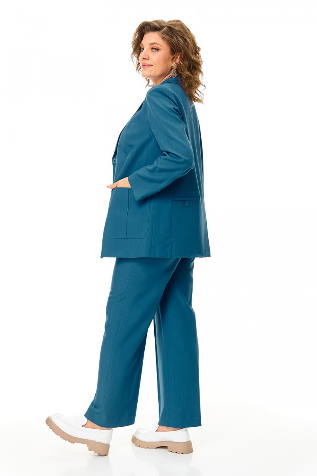 Костюм: жакет, брюки.Выполнен из текстильной костюмной ткани.
