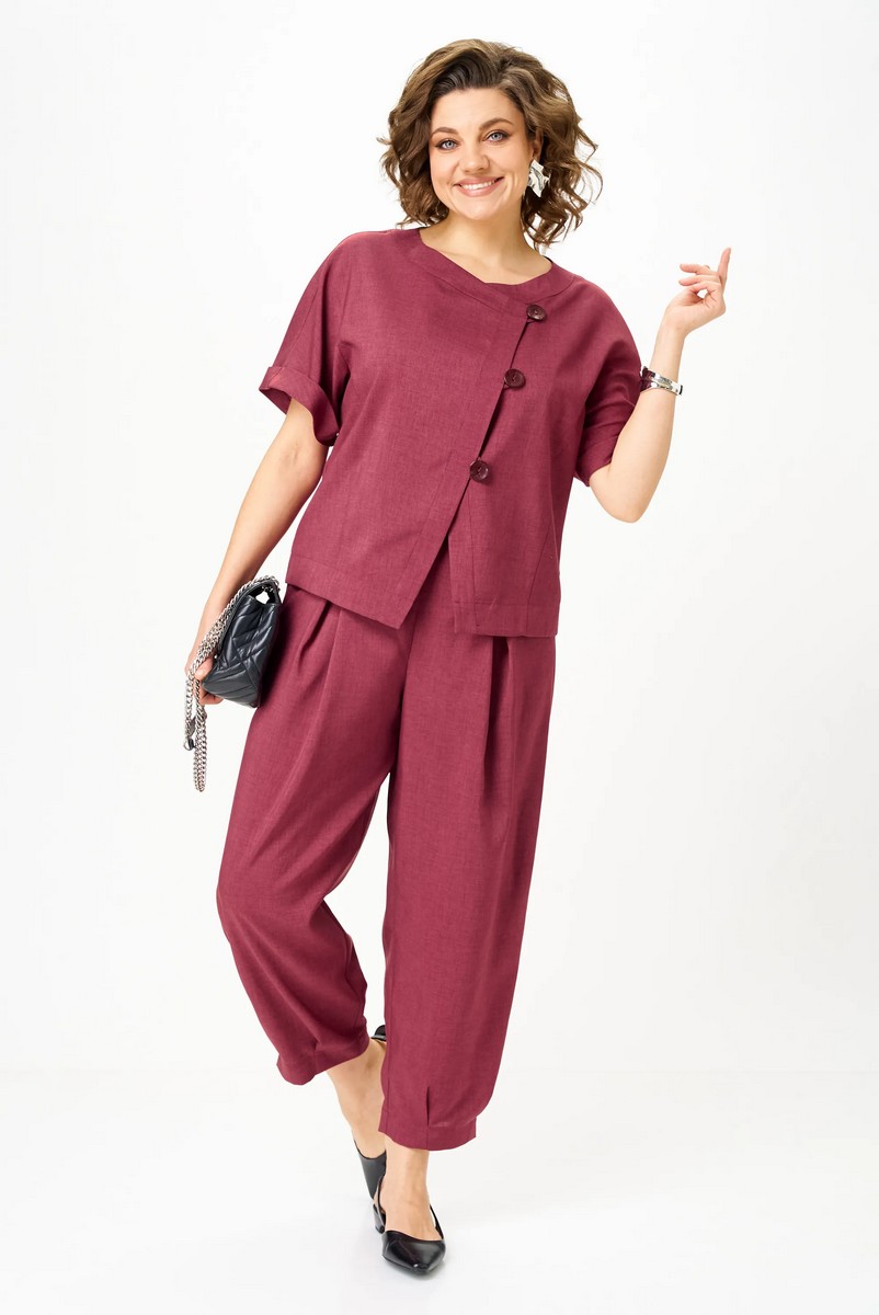 Женский костюм «Шехерезада» рубиновый. Бестселлер, проверенный временем и сотнями довольных покупательниц. Костюм «Шехерезада» — это продуманный крой, комфорт и эффектный образ без усилий. Материал: искусственный лён нового поколения — приятный к телу, не деформируется, не выцветает, не растягивается и не скатывается. Лёгкий в уходе, сохраняет аккуратный вид даже при активной носке.