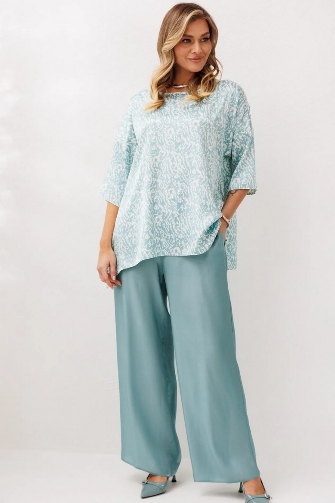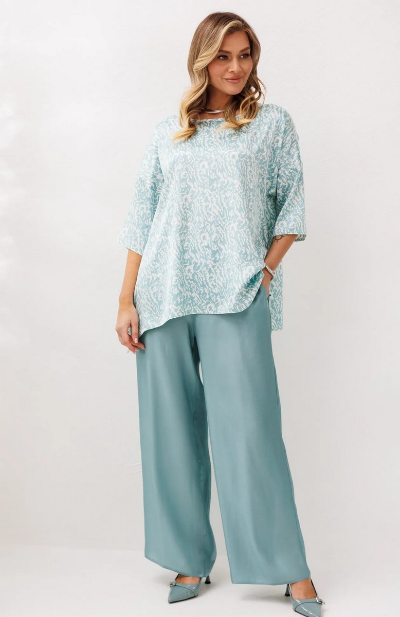 Оригинальный комплект от бренда Anastasia - идеальный выбор для любого случая. Комплект женский 2-х предметный (блузка, брюки) из текстильной ткани, станет акцентным дополнением к вашему гардеробу. Отлично подойдет как для повседневной носки (работа, офис, прогулки), так и для праздничных выходов (свадьба, корпоратив, выпускной). Достаточно дополнить его соответствующими аксессуарами. Предметы комплекта легко будут сочетаться с вещами из Вашего гардероба. Блузка со спущенным плечом, трапециевидного силуэта с разрезами по бокам. Брюки прямые, пояс на резинке, по бокам карманы.