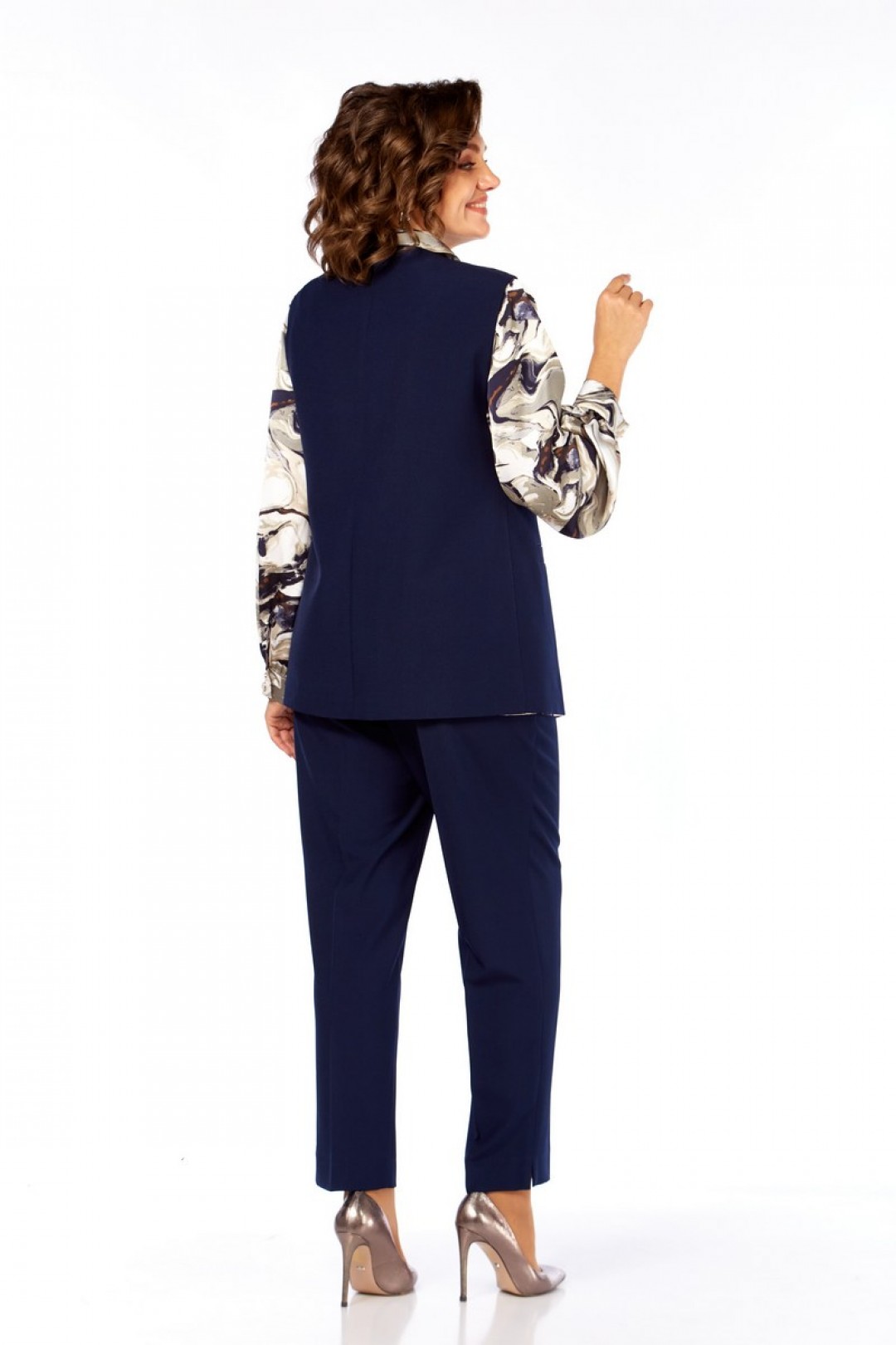 Комплект женский, состоящий из жилета, брюк и блузы.