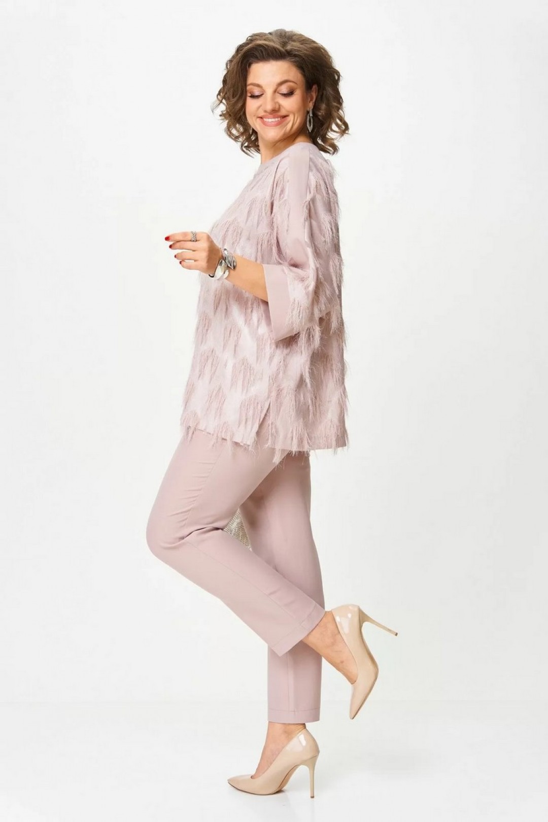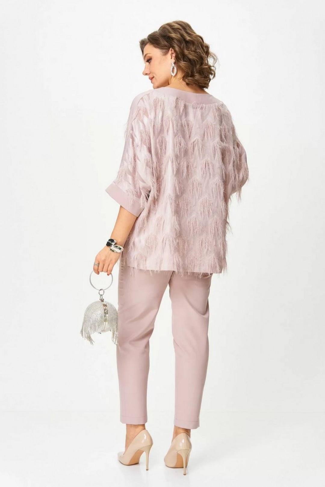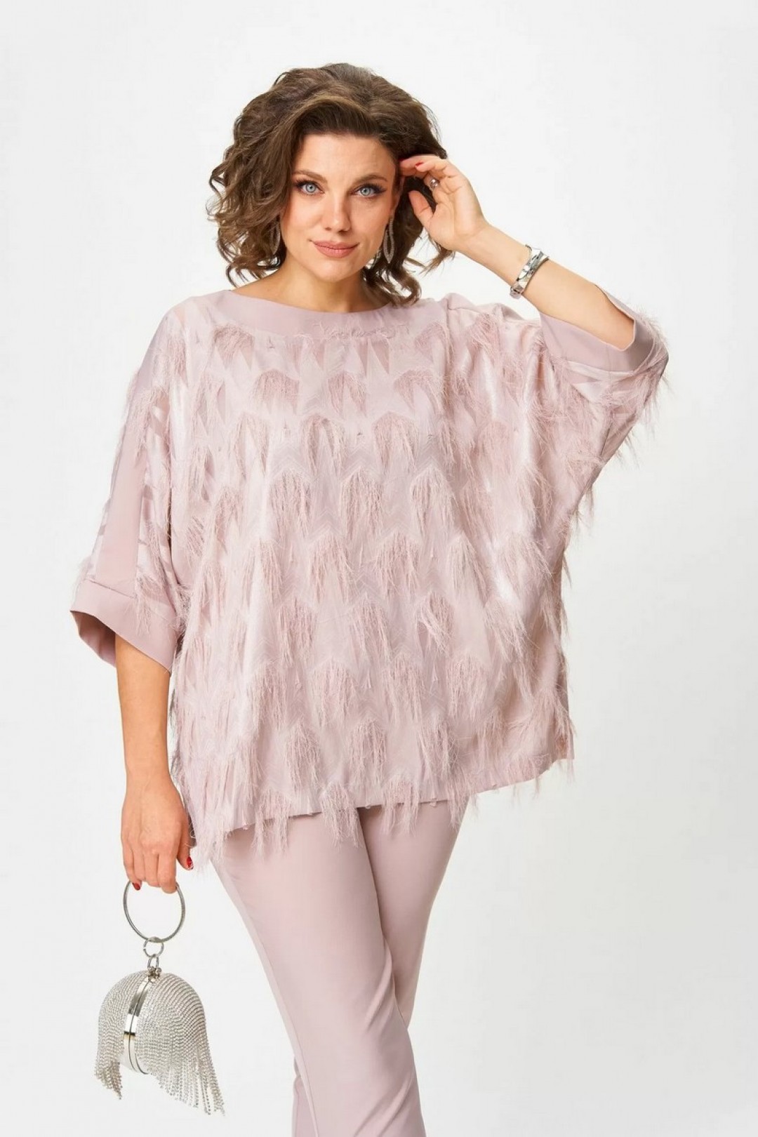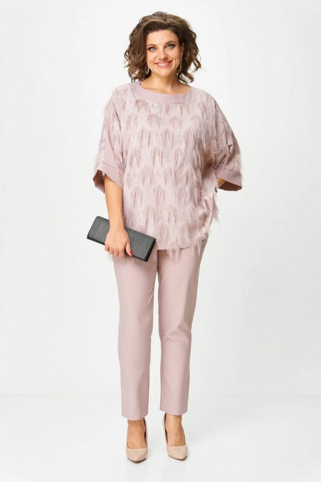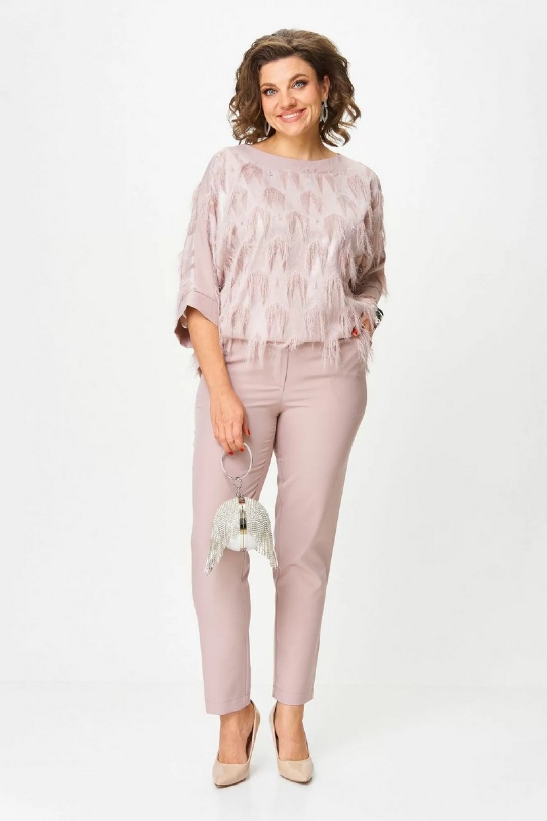 Элегантный комплект, в котором вы почувствуете себя богиней. Лёгкая блуза с фактурой «реснички» добавляет праздничного сияния и легко комбинируется с другими юбками или брюками. Универсальный цвет делает её идеальным спутником для любых образов. Брюки с удобной посадкой стройнят и подойдут не только для торжества, но и для повседневного стиля.
