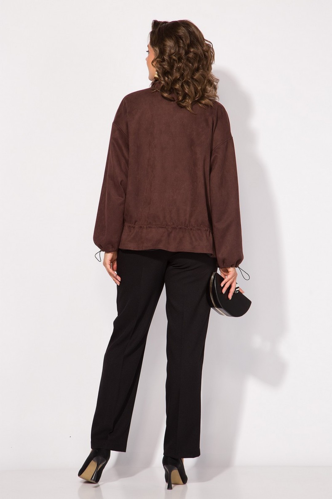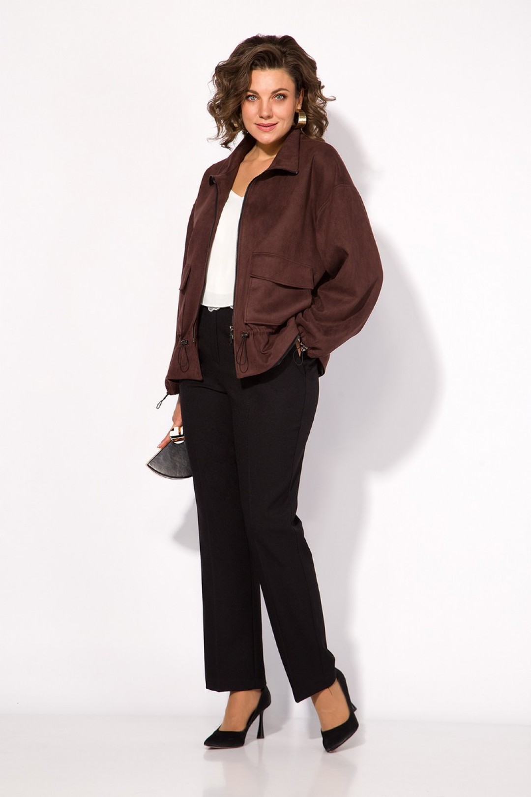Откройте для себя идеальный женский жакет — универсальную вещь, которая подчеркнет ваш стиль и добавит уверенности! Модель свободного силуэта, на спущенной линией плеча. Рукав полной длины, с кулиской по низу. Воротник – стойка, переходящая в застежку молнию. По полочке расположены накладные карманы с клапаном. Чуть ниже линии талии расположена кулиска для более комфортного прилегания! Изделие на шелковой подкладке. В комплекте классические женские брюки, со средней посадкой, прямого покроя от бедра. Застежка – брючная тесьма-молния с обработанным гульфиком. Карманы боковые. Пояс притачной, в боковых участках вставлена резинка на свободу. По переду заутюжены канты. Спинка с Талиевыми выточками. Подгибка брюк –– 4 см.