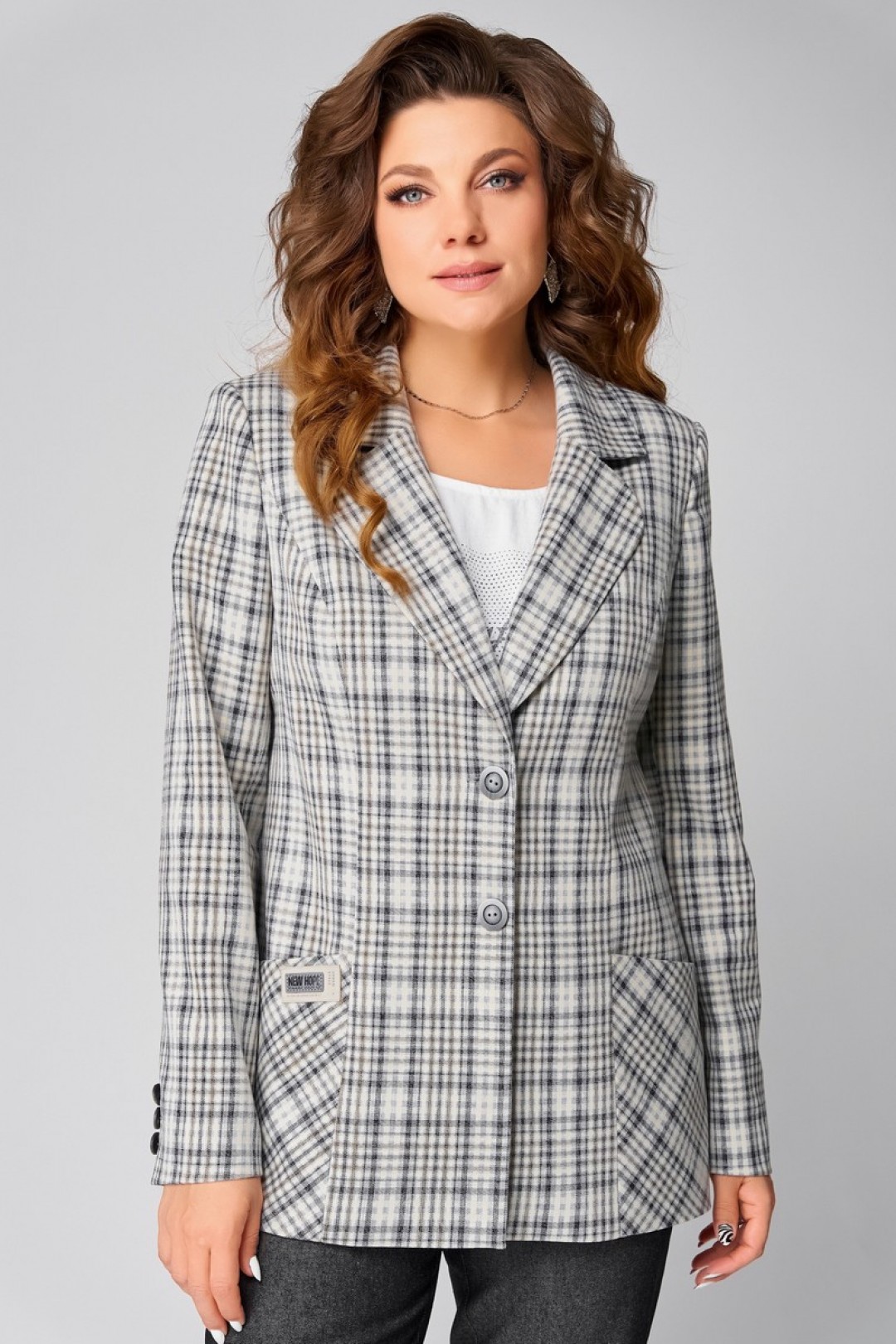 Жакет прямого силуэта на подкладке — строгий, но изящный. Однобортная застёжка с элегантными лацканами подчеркивает выдержанный характер, а прорезной карман добавляет практичности. Двухшовные рукава и аккуратный средний шов на спинке подчёркивают архитектурность кроя, словно намекая на сдержанный шарм городской моды.