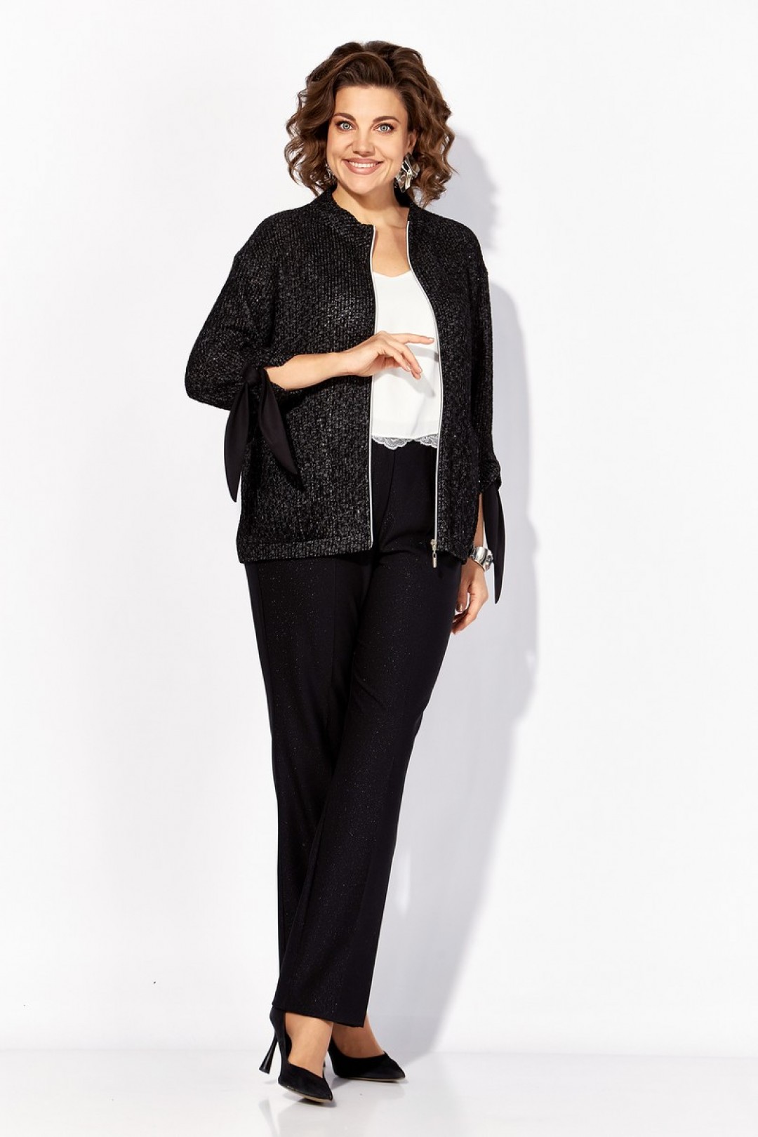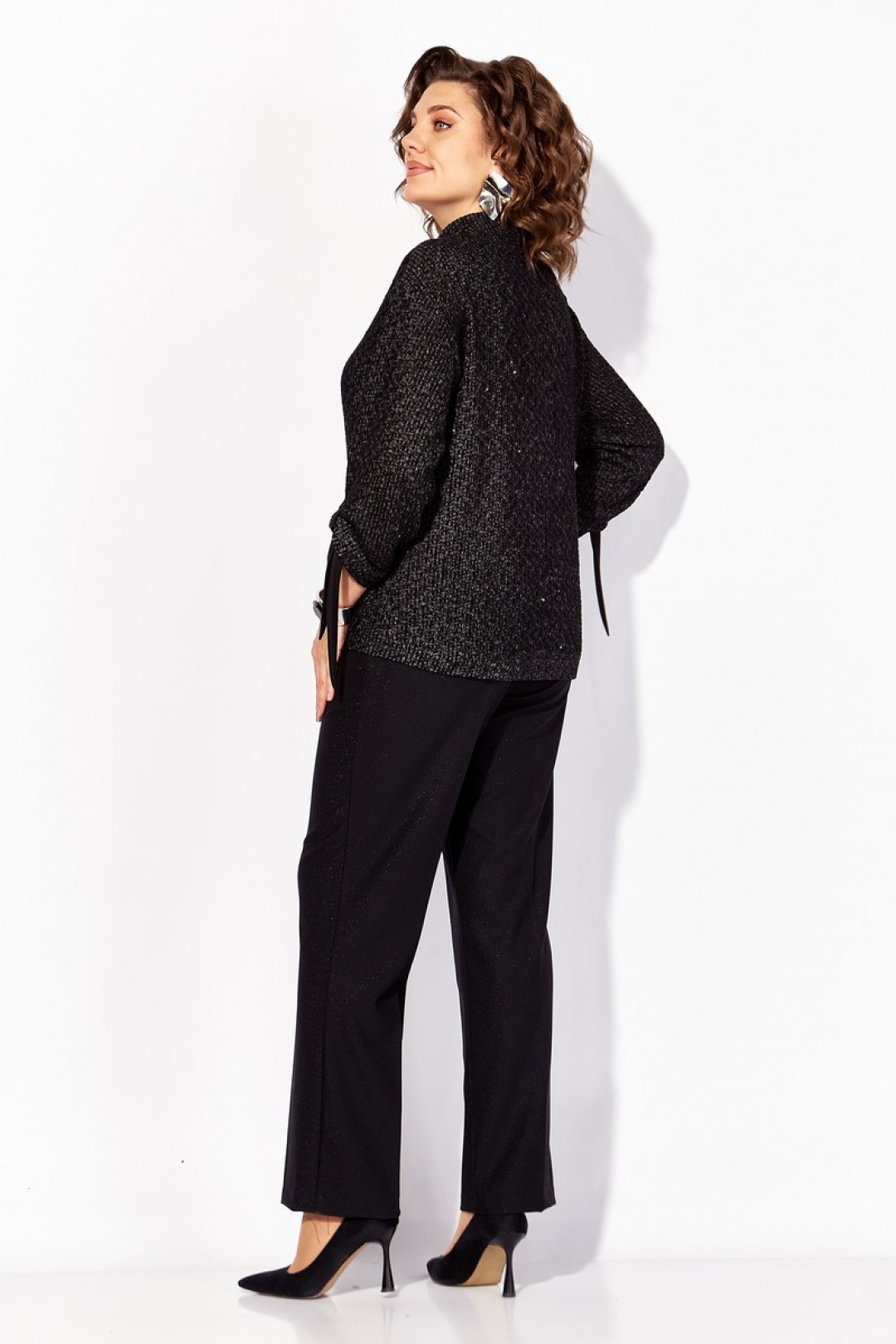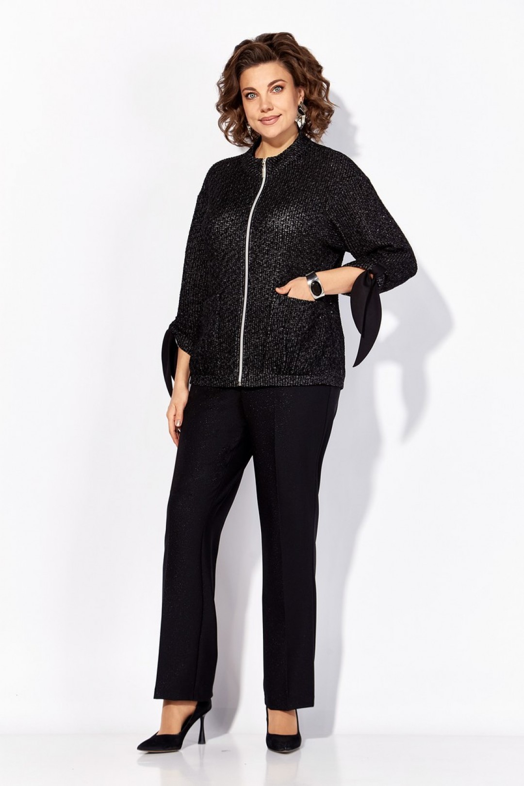 Эффектный, нарядный облегченный жакет, выполнен из вязанного трикотажа с эффектом легкого мерцания. Модель свободного силуэта, с рукавом длиной ¾-ти на спущенном плечевом поясе. Горловина обработана полулежащей стойкой. Застежка центральная на молнию. По полочке расположены аккуратные накладные карманы. Низ изделия оформлен притачной планкой. Изюминкой данной моделям служит необычные паты по рукаву с завязкой в виде банта. Этот вязанный трикотажный жакет - идеальный вариант для создания стильного и привлекательного романтического образа! Мягкий и нежный материал делает его очень приятным на ощупь, теплым и уютным, а легкое мерцание придает свою изюминку. Отлично сочетается с классическими прямыми брюками из базовой коллекции от бренда Лилиана!