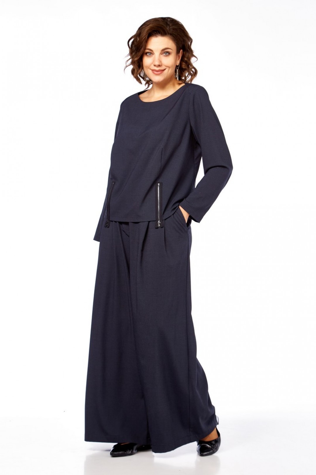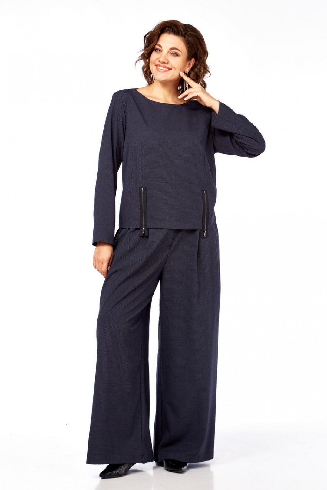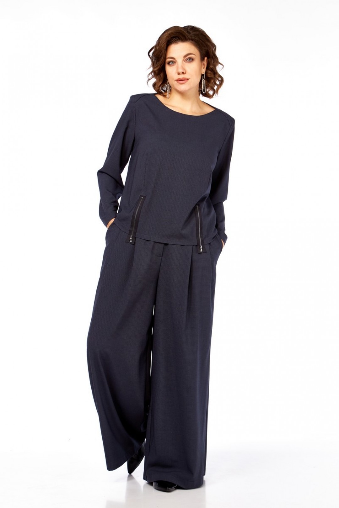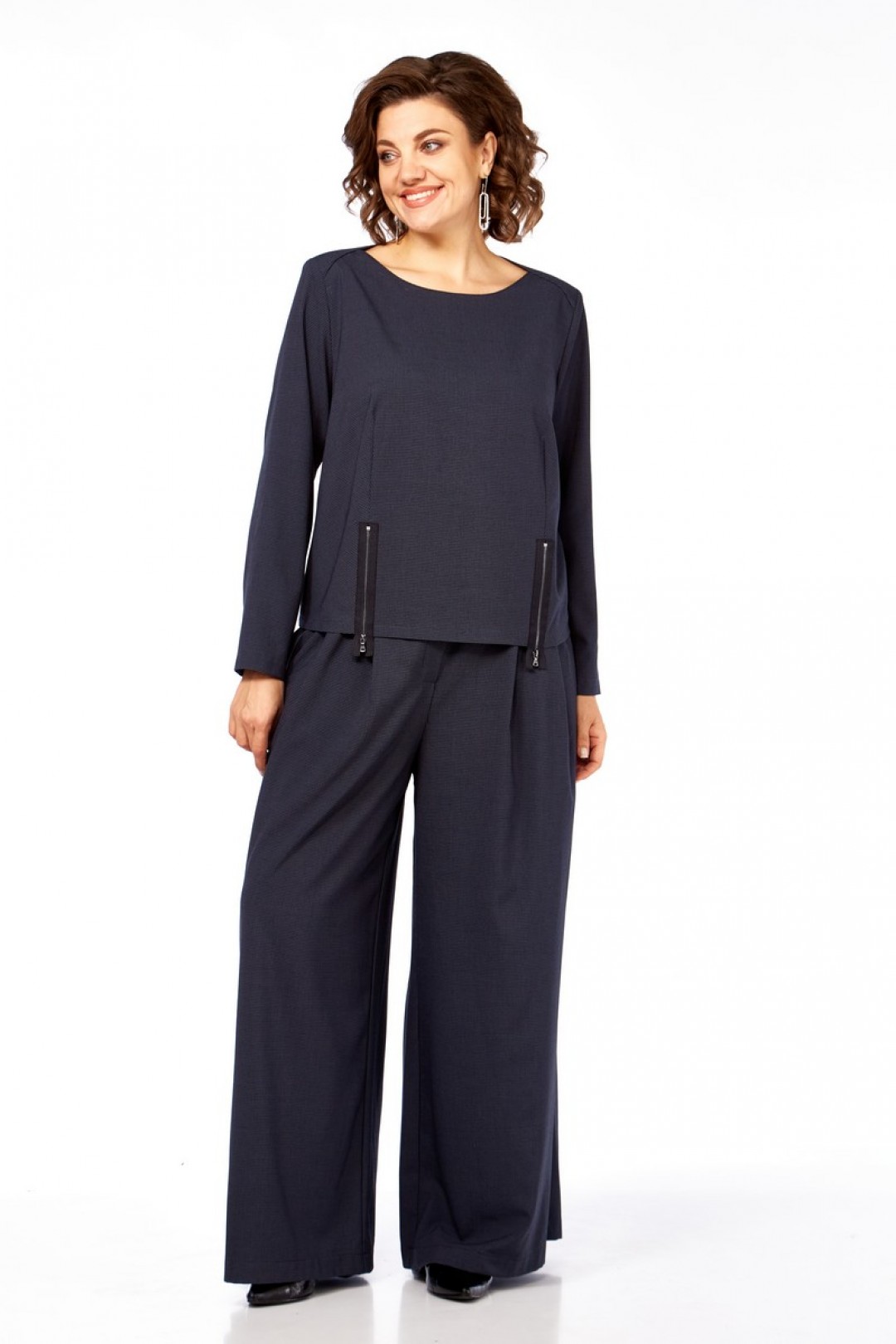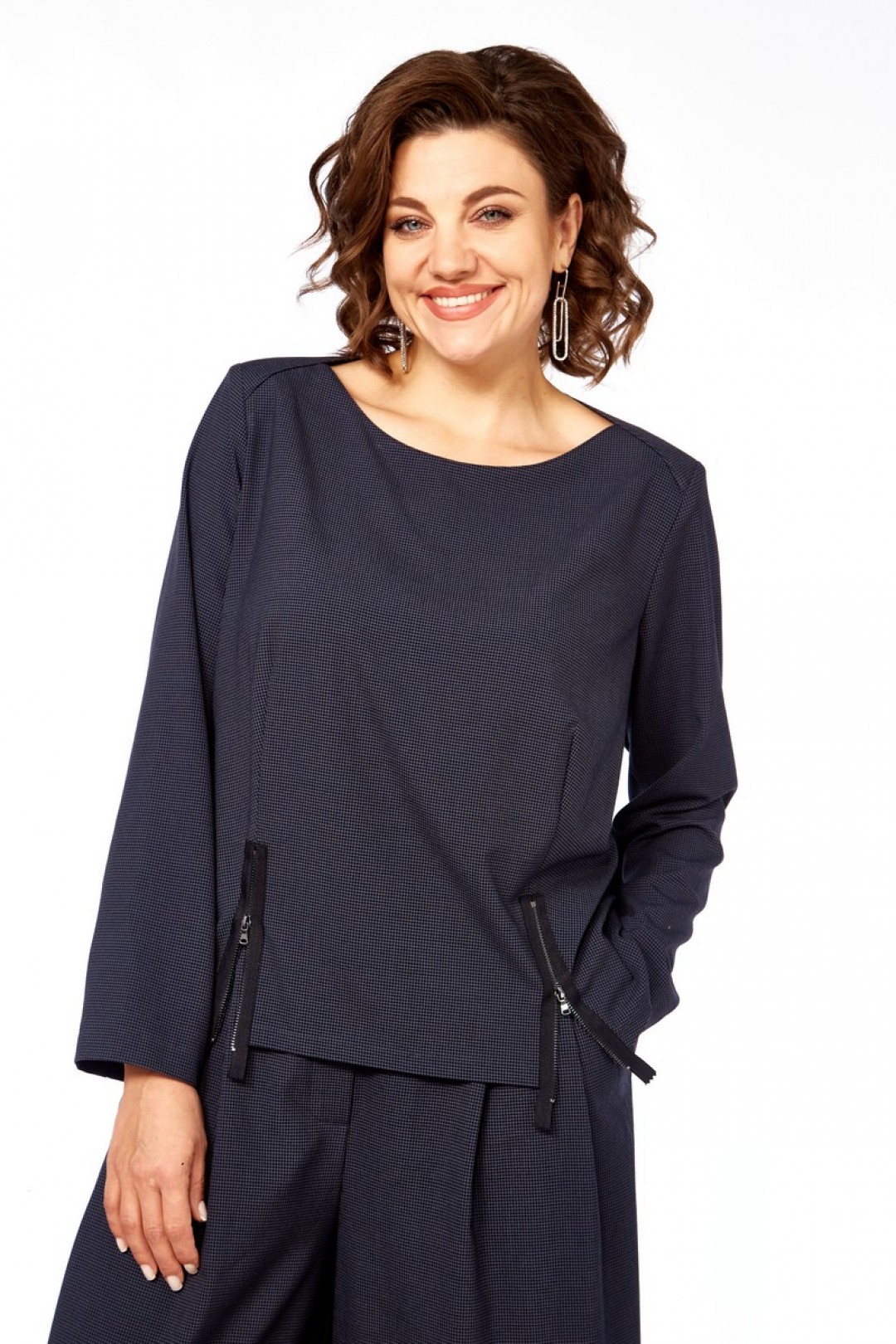 Блуза полуприлегающего силуэта. Перед с нагрудными вытачками, уходящими вниз,в области бедер настрочены молнии, образующие разрезы. Спинка со средним швом и талиевыми вытачками. Рукав втачной, двухшовный. Фурнитура может отличаться от заявленной на фото.