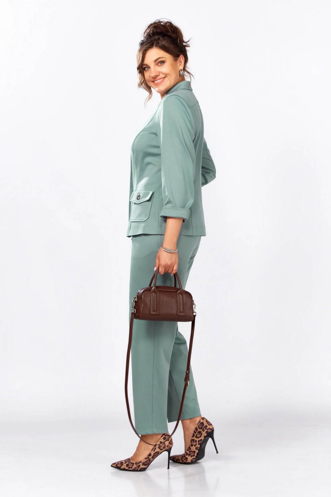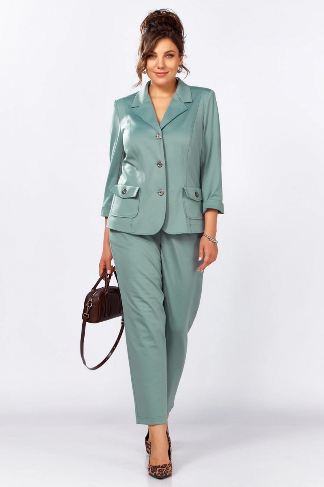Стильный брючный костюм 2-ка. В нем легко и комфортно, можно носить куда угодно: на работу, в офис, на свидание, в ресторан или просто на прогулку. Жакет полуприлегающего силуэта, застежка на 3 пуговицы. Функциональные накладные карманы. Рукав три четверти с отворотом. Жакет без подкладки. Брюки свободного силуэта из текстильной ткани с карманами, средней посадки, пояс на резинке.