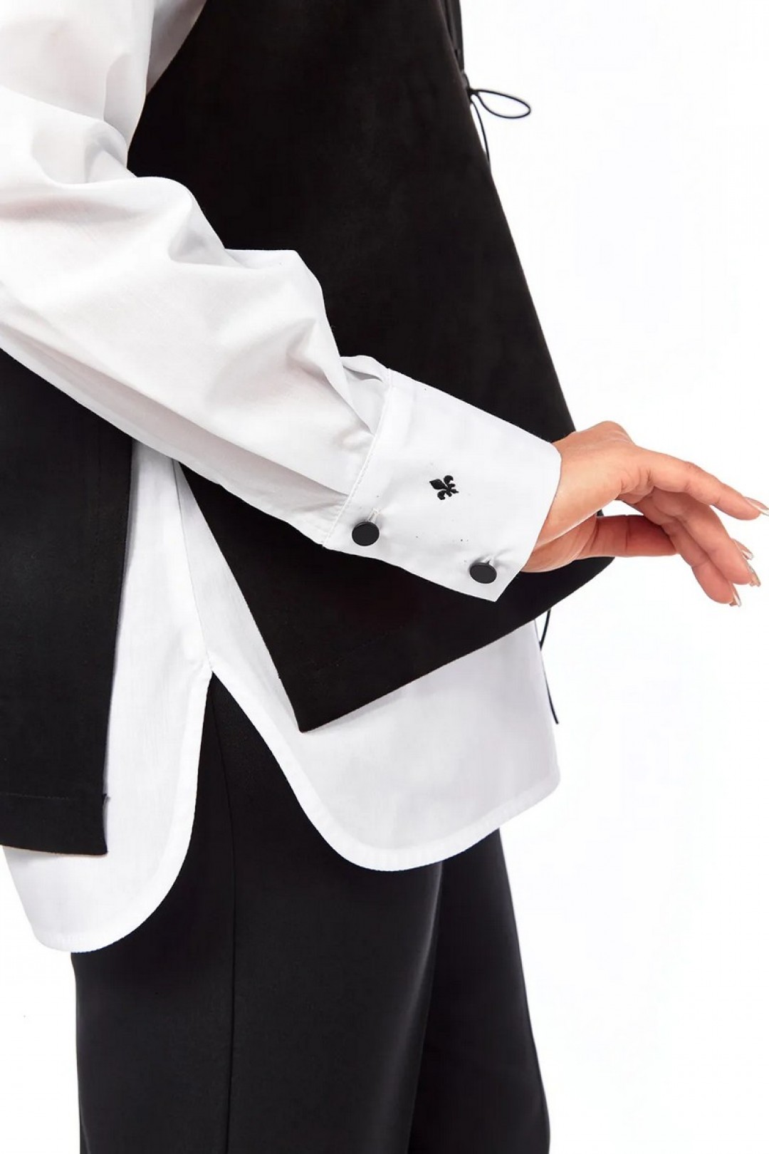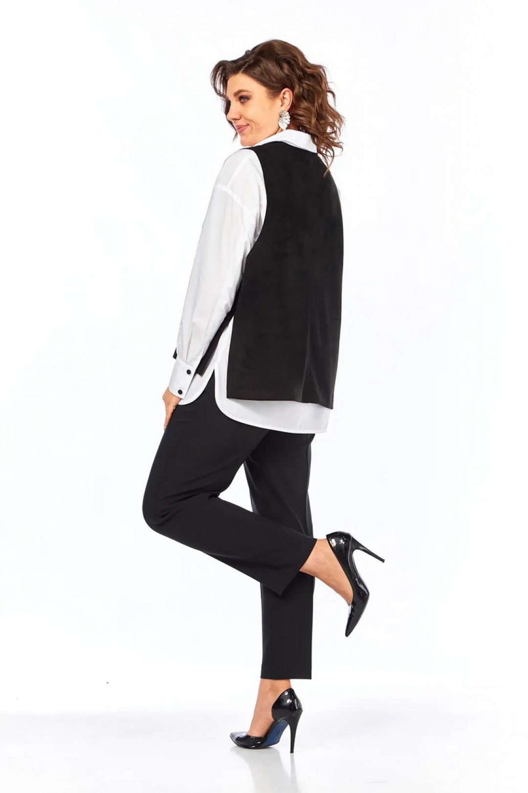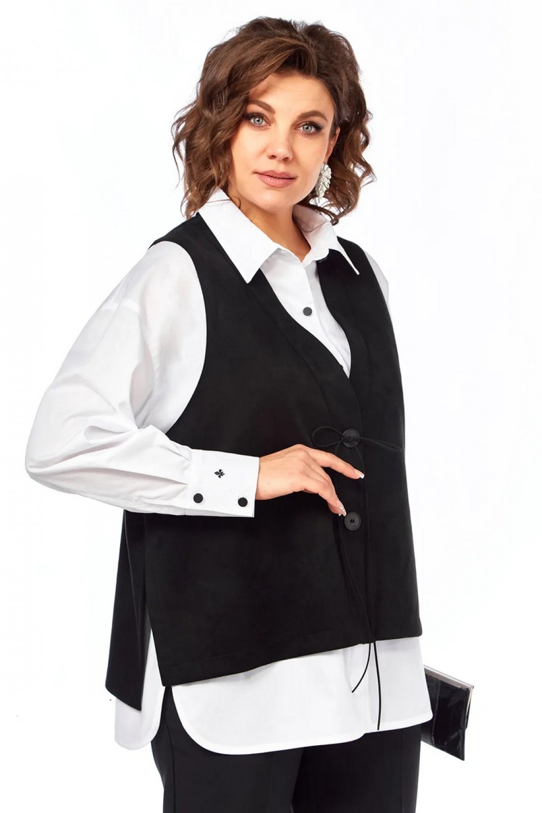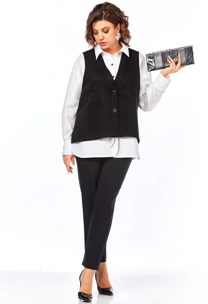 Длина изделия жилет по спинке — 64 см, блузка по спинке — 72 см