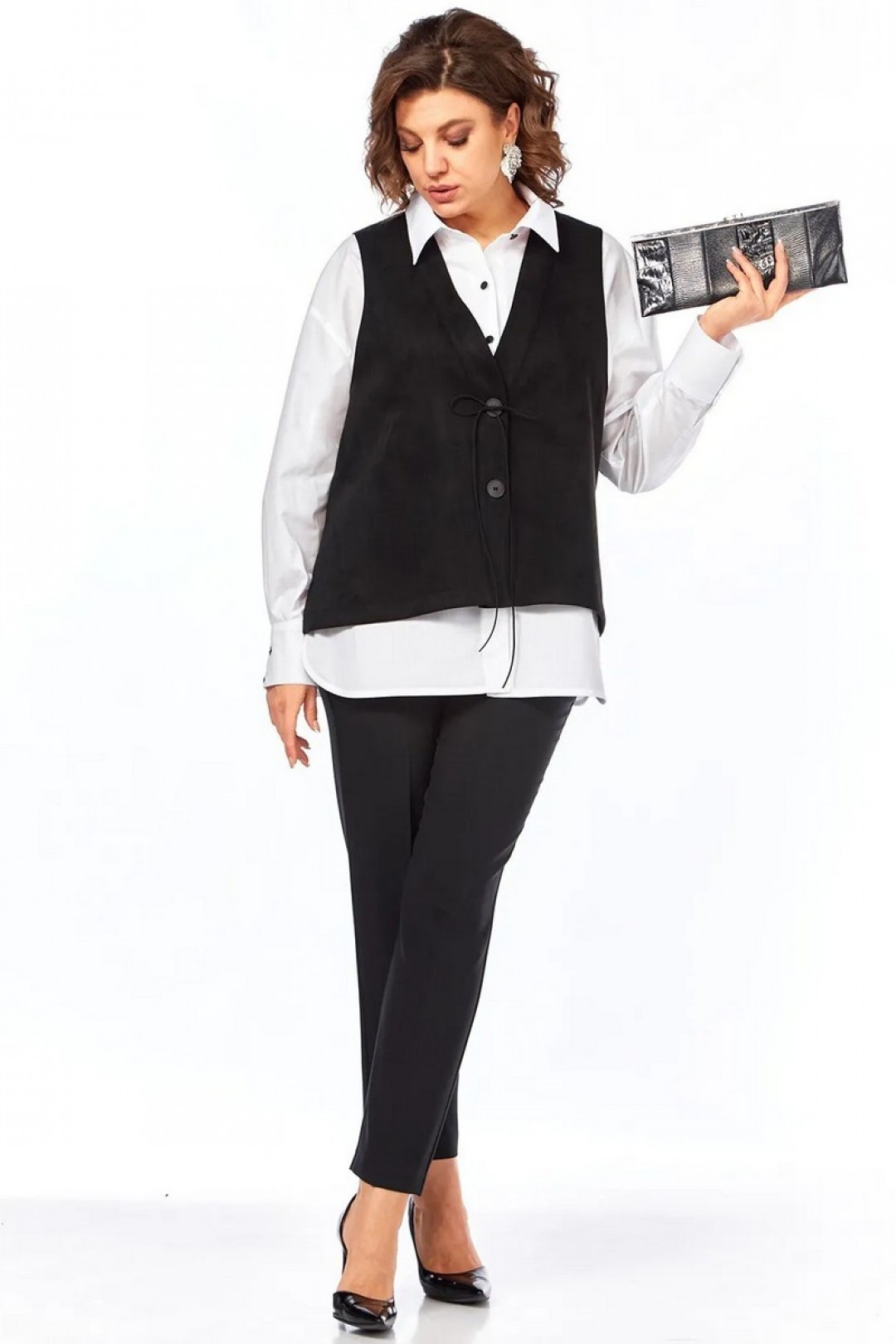 Комплект женский брючный 3-х предметный, состоит из жилета, блузки и брюк.