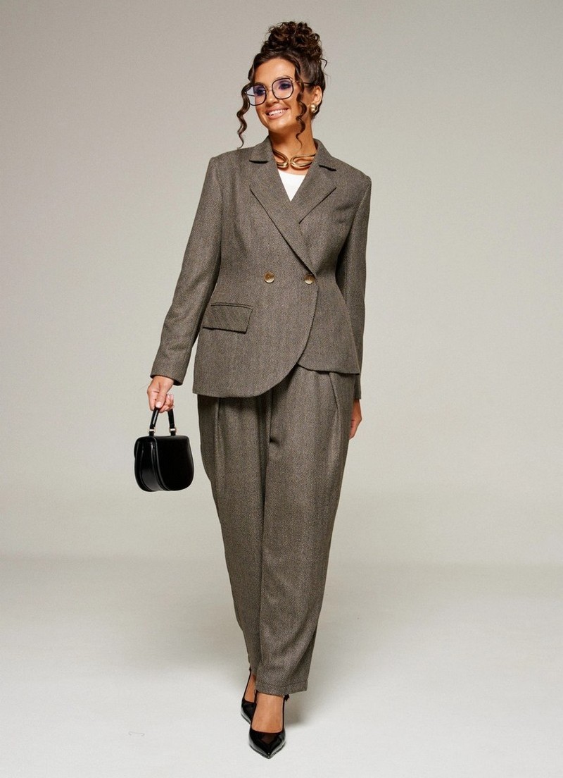 длина жакета (по среднему шву спинки) – 65-66 см. длина рукава жакета – 61,5 см длина брюк (по боковому шву с поясом) – 99 см.