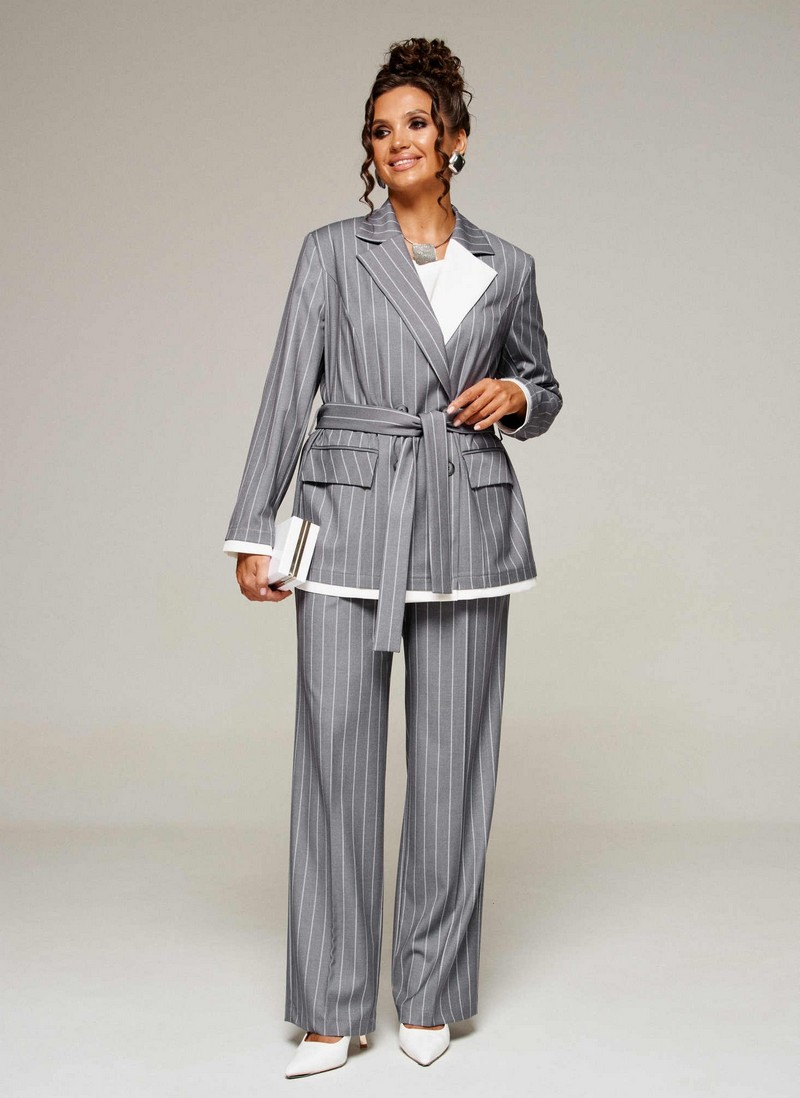 Костюмы брючные Beautiful & Free 6369 серый, скидка 10%, распродажа 2025. Размеры 54, 56. Есть большие размеры. Фото