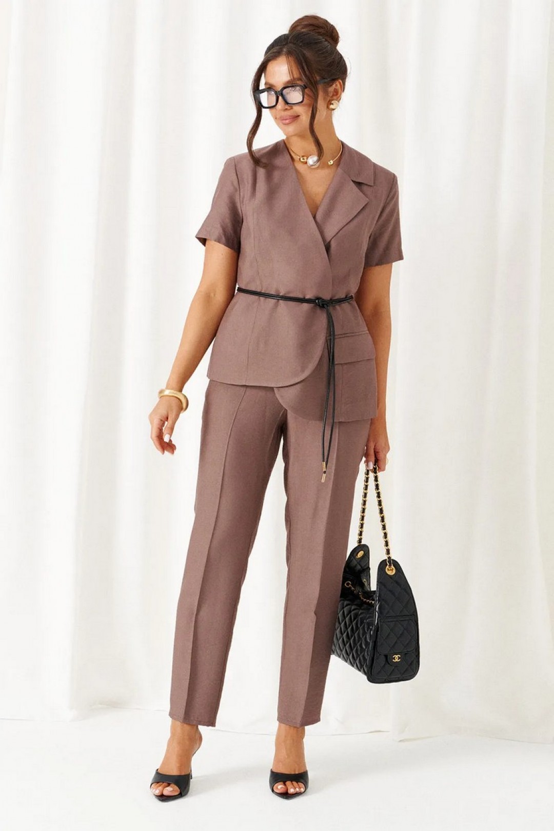 Женский льняной костюм с акцентными деталями и эффектные оттенки!