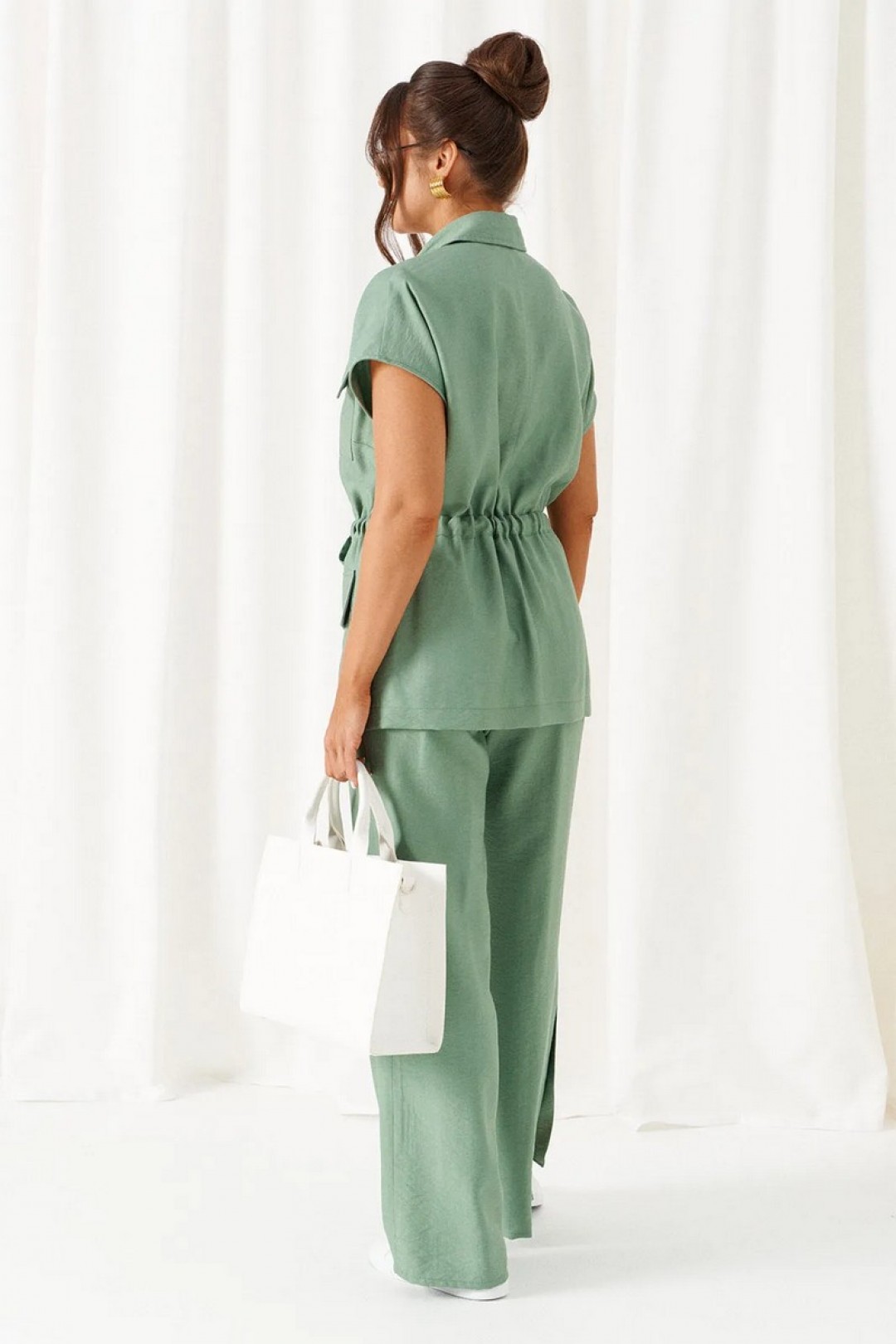 Женский льняной костюм из смесовой ткани с натуральным составом, акцентные накладные карманы и безупречные любимые оттенки.