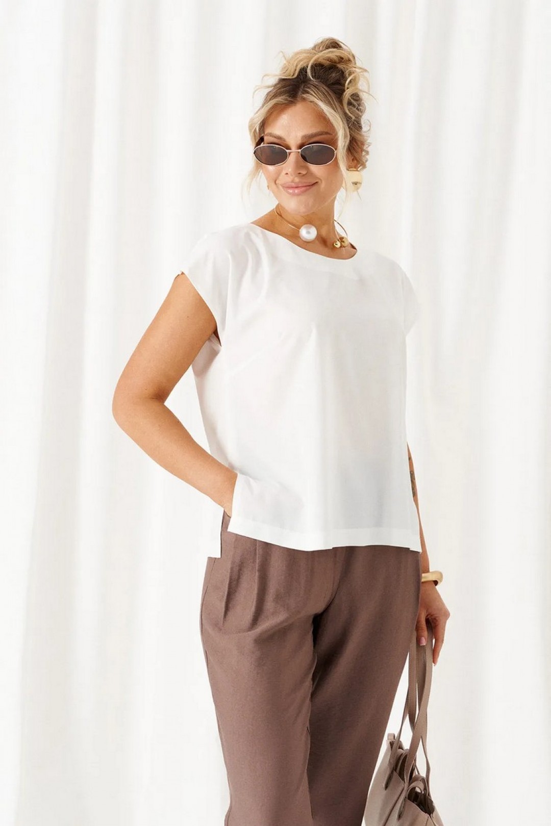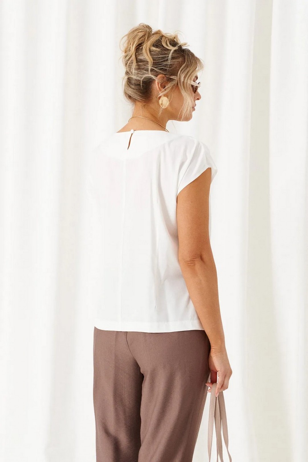 Блузка полуприлегающего силуэта, выполнена из тонкого смесового вискозного полотна.