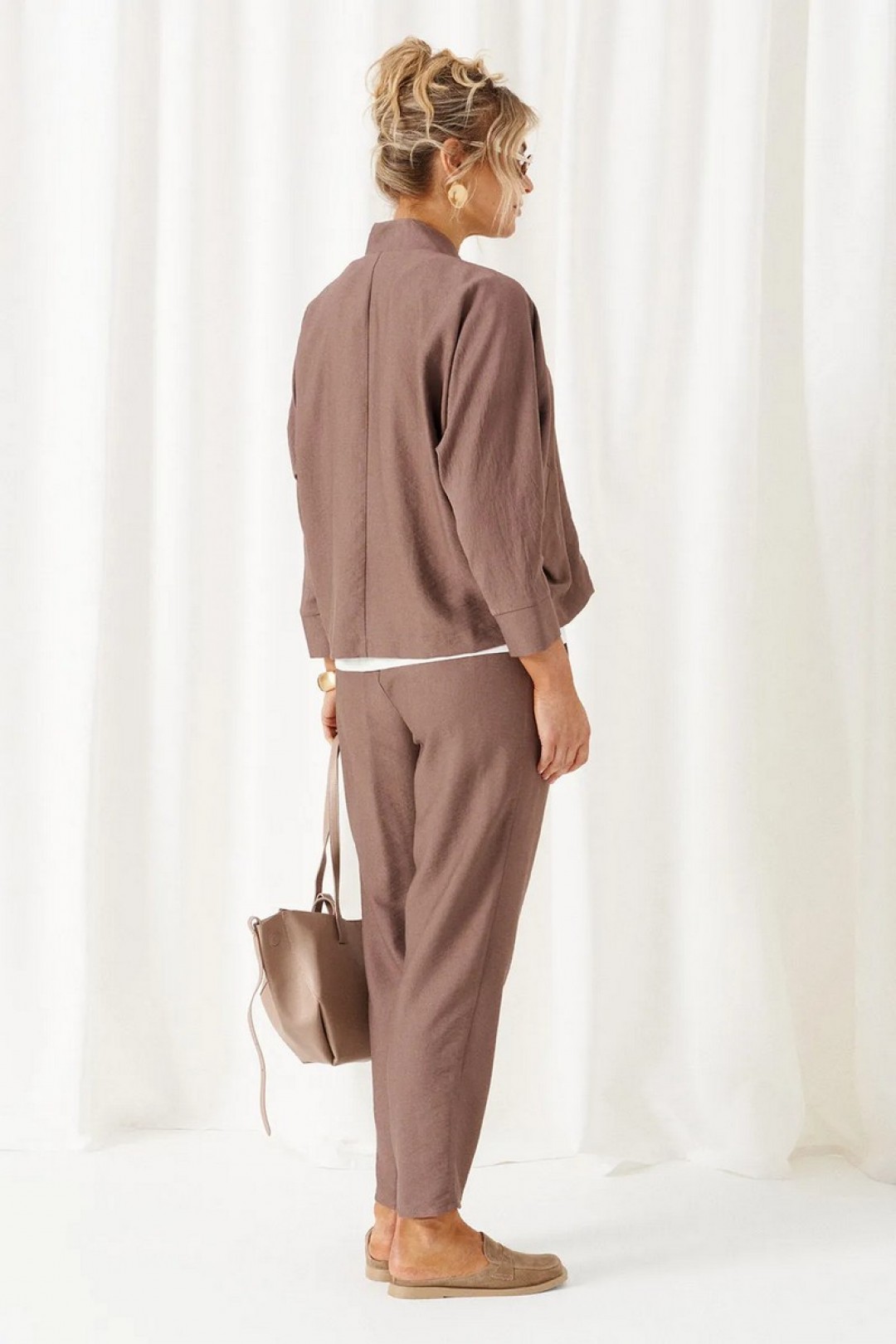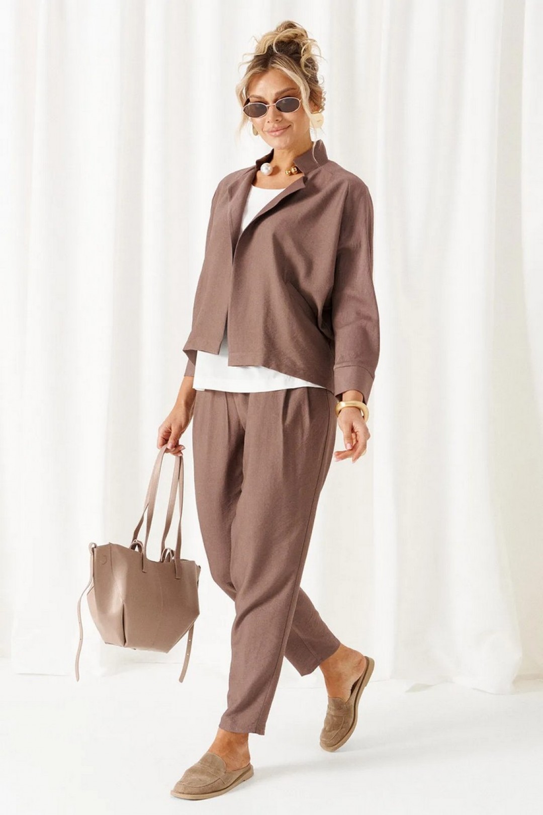 Жакет свободного силуэта выполнен из смесового полотна с содержанием натуральных волокон.