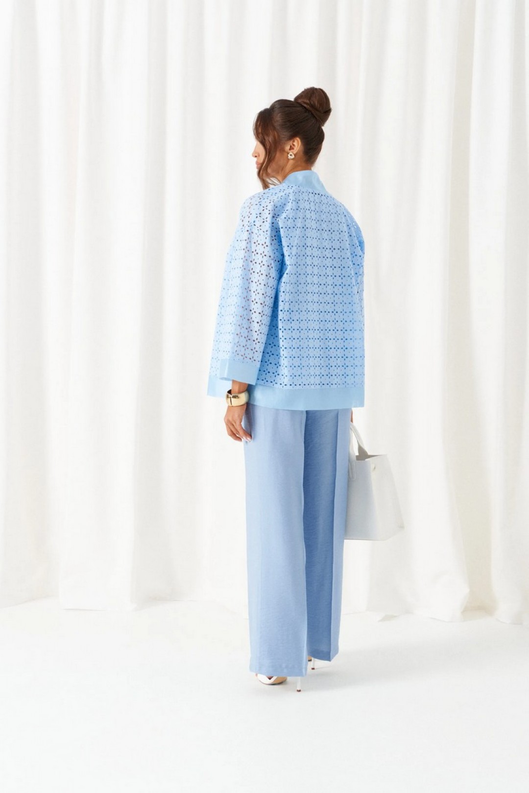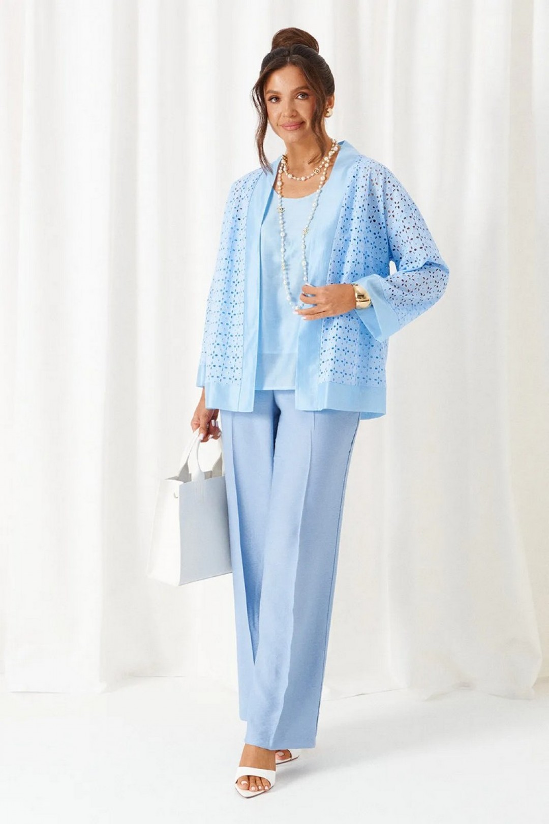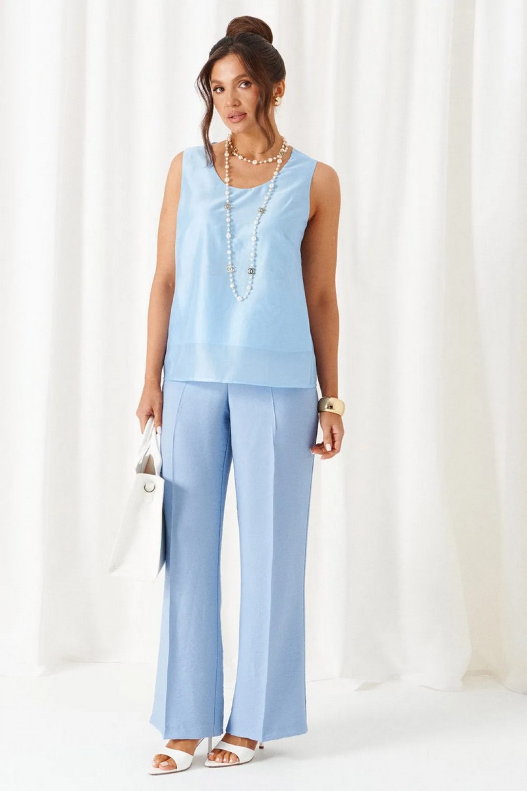 Брючный комплект в комбинации роскошного льняного полотна с эффектным шитьем не останется незаметным в весенне-летнем сезоне!