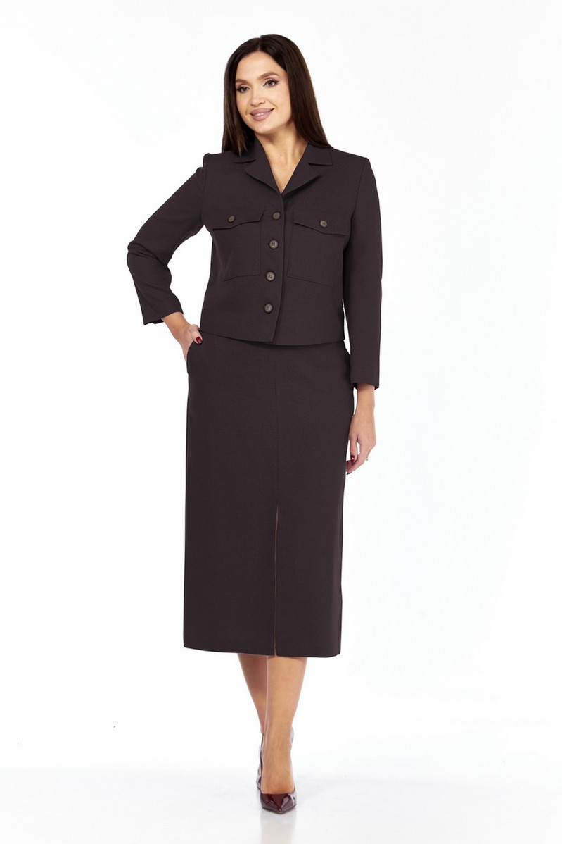 Жакет: длина жакета по спинке – 49 см, длина рукава – 54 см. Юбка: длина по боковому шву – 87 см.