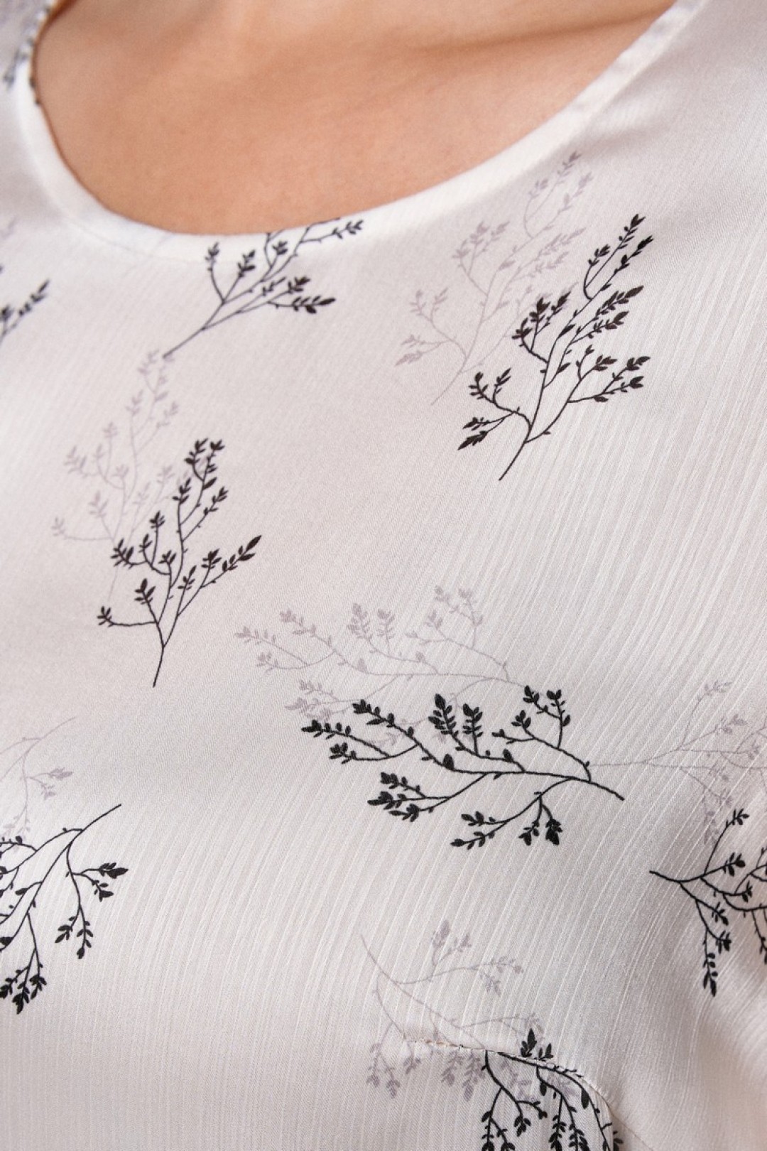 При правильном уходе изделие прослужит долгие годы. Блуза женская свободного силуэта выполнена из легкого непросвечивающегося сатина, которая имеет втачные рукава с манжетами на пуговицах и вырез горловины округлой формы.