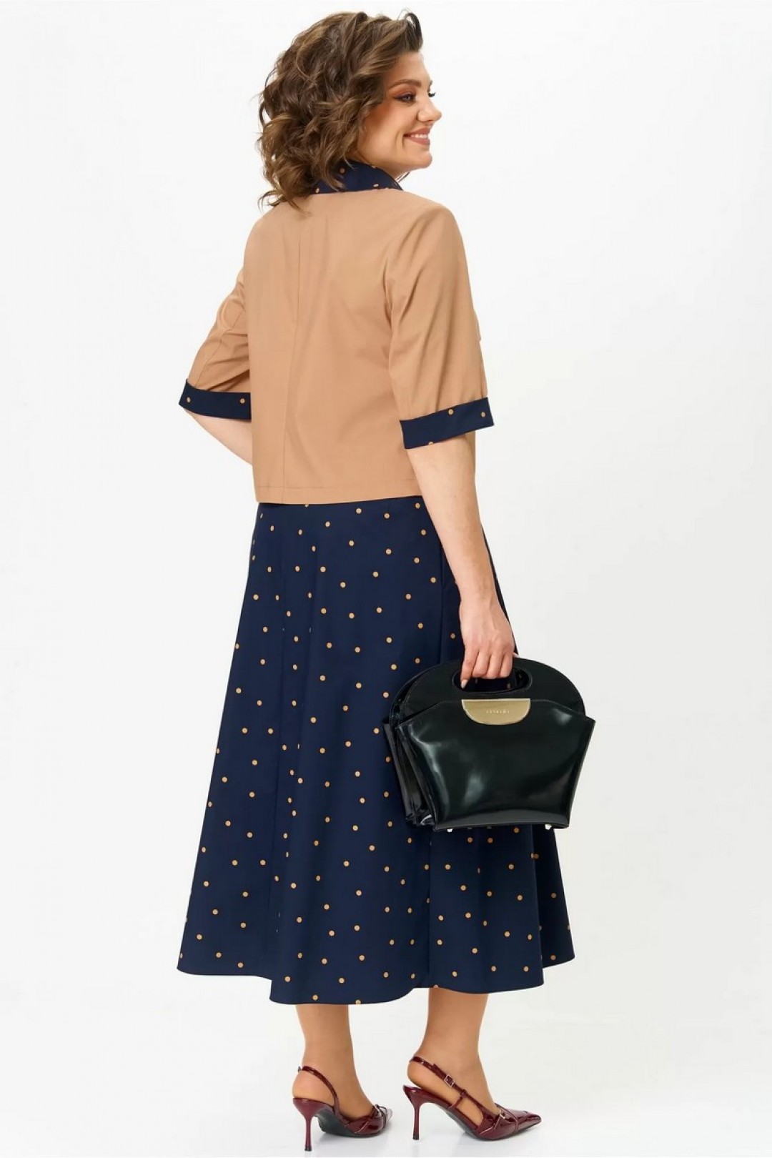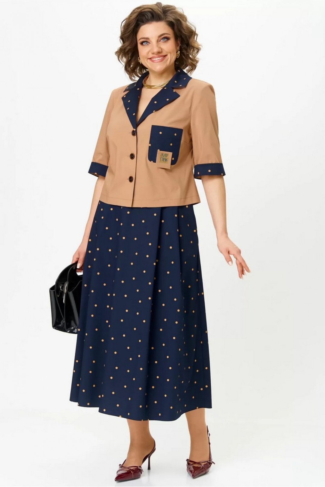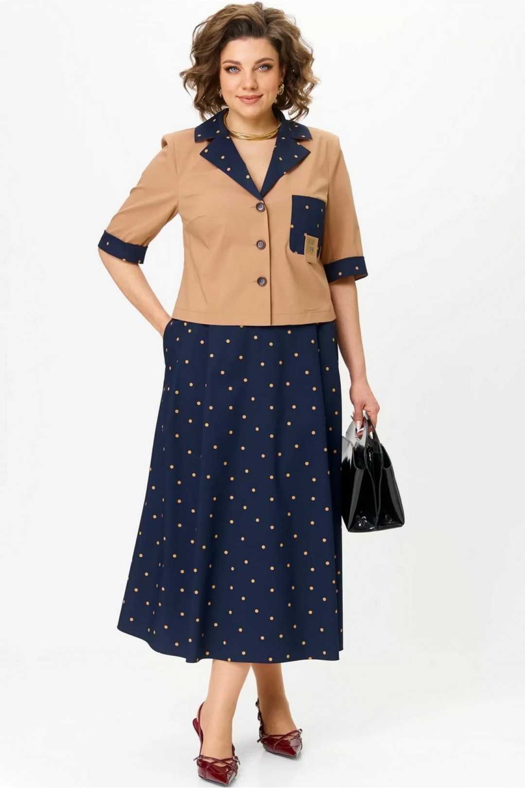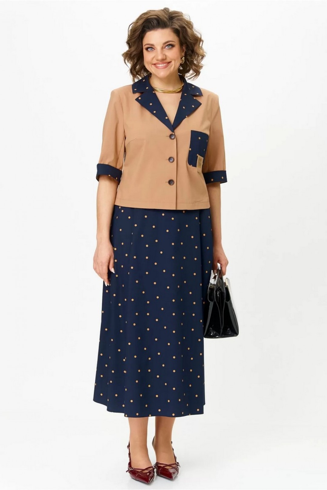 Комплект женский состоит из жакета и юбки. Элегантный женский жакет без подкладки с воротником пиджачного типа и застежкой на 3-и петли и пуговицы. По левой части переда накладной карман с декоративной нашивкой. Рукав втачной двухшовный с манжетой по низу. Юбка А-образного силуэта со складками по переду, в боковых швах карманы. Для максимально комфортной посадки по бокам пояса вставлена эластичная резинка.