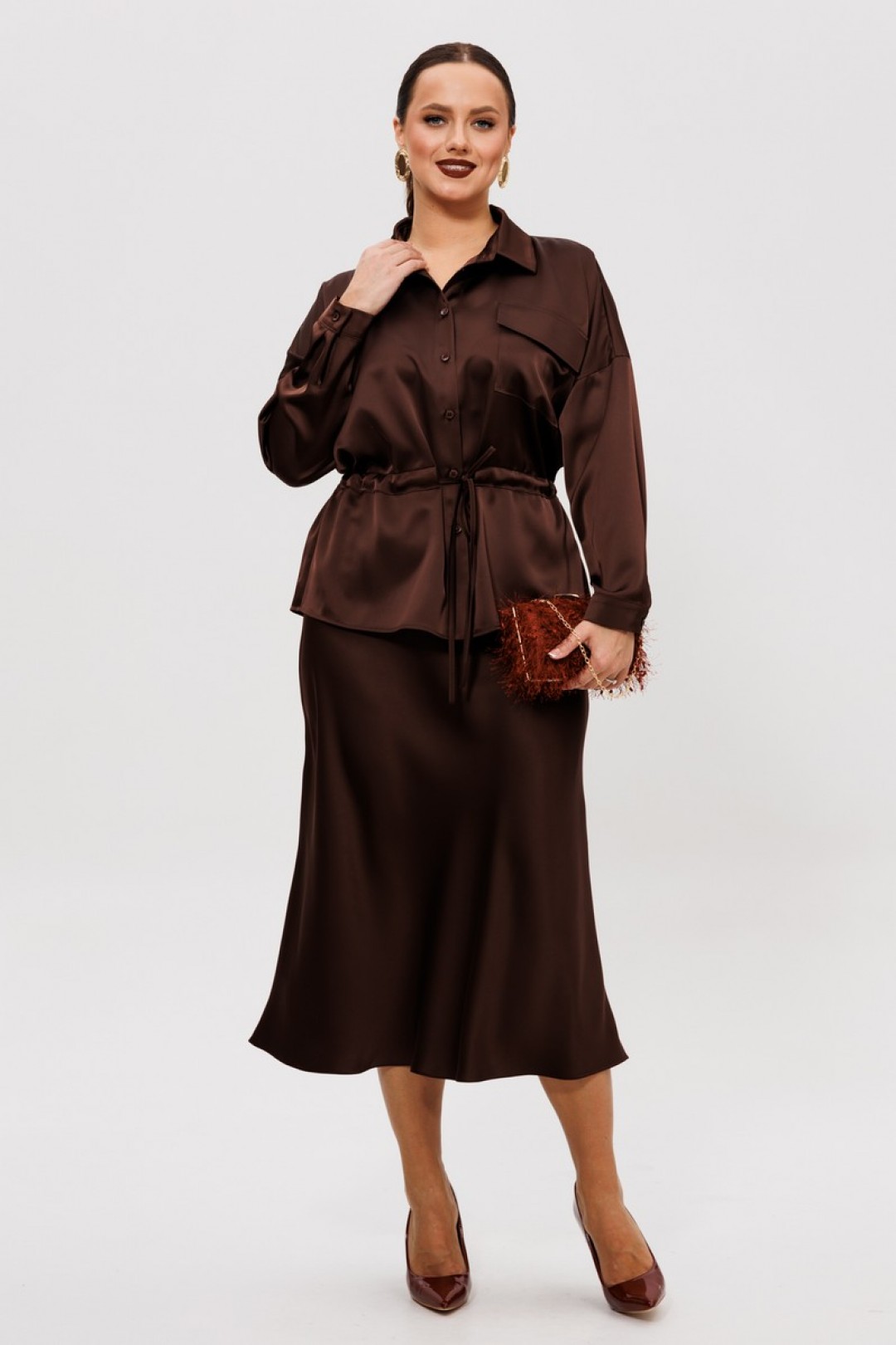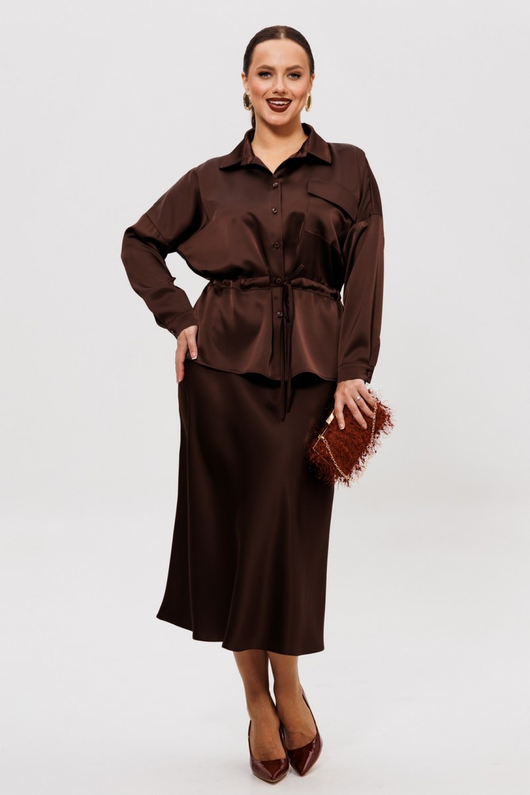Нарядный юбочный костюм, выполненный из струящегося шелка «Армани» (тянется).