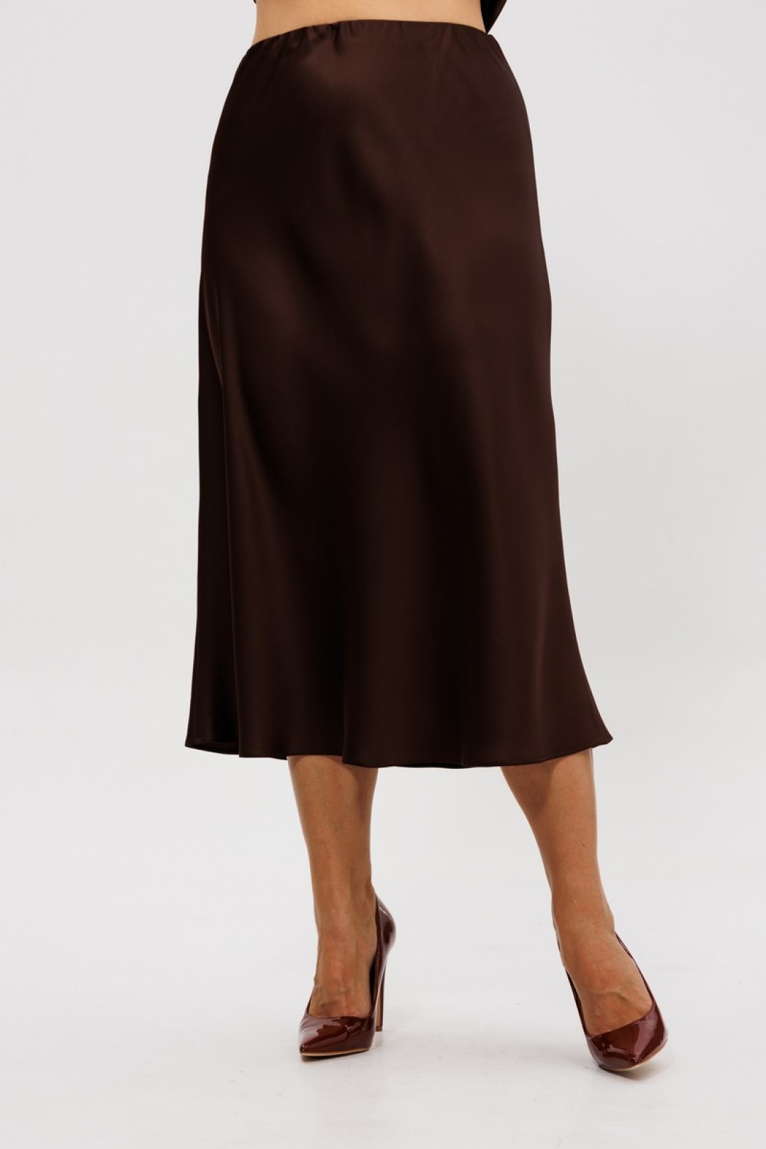 Юбка расширенная к низу. Верхний срез оформлен поясом с эластичной резинкой. Юбка без подкладки