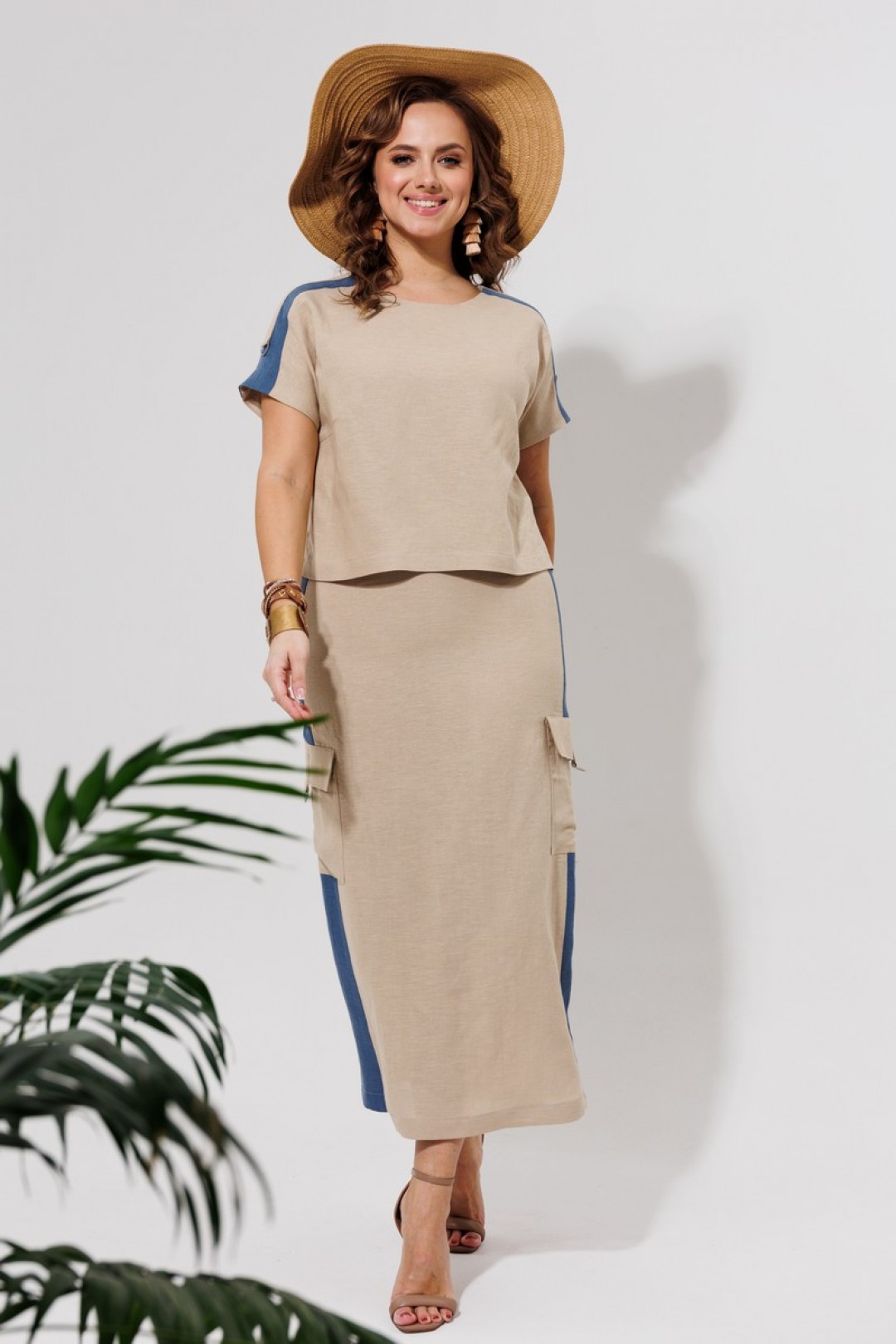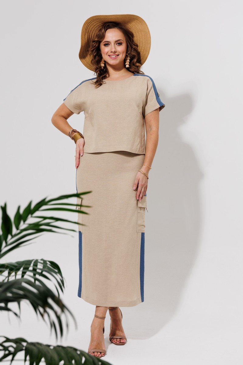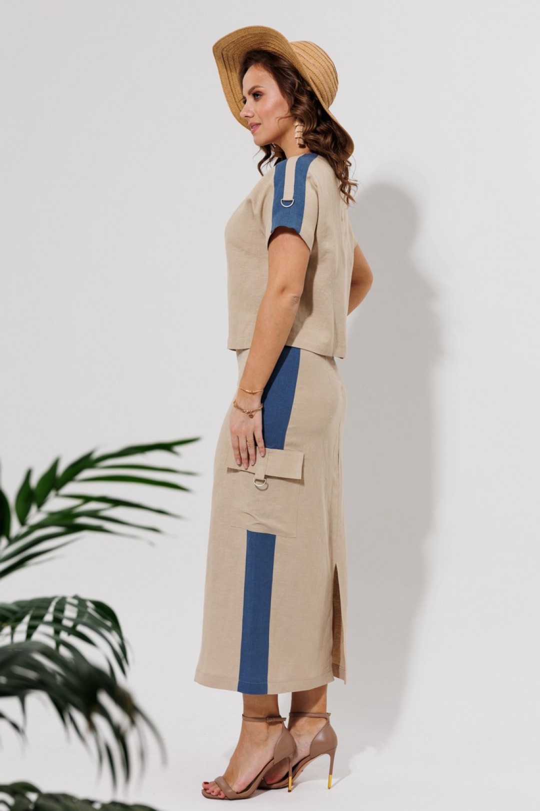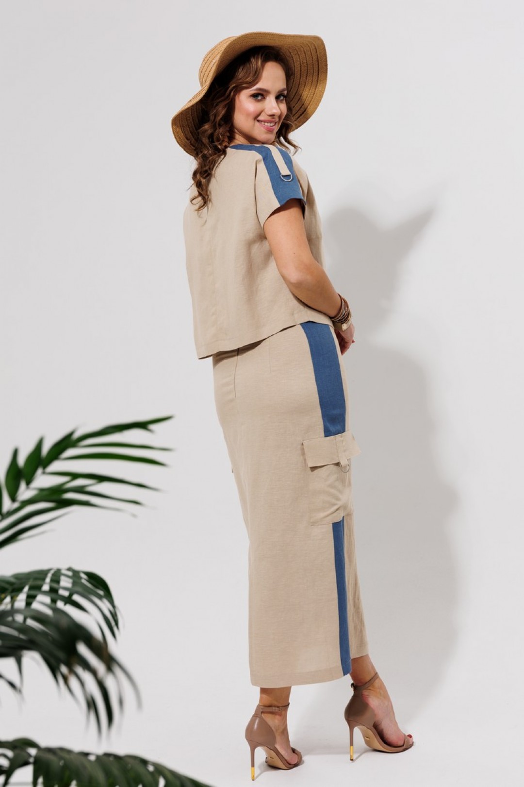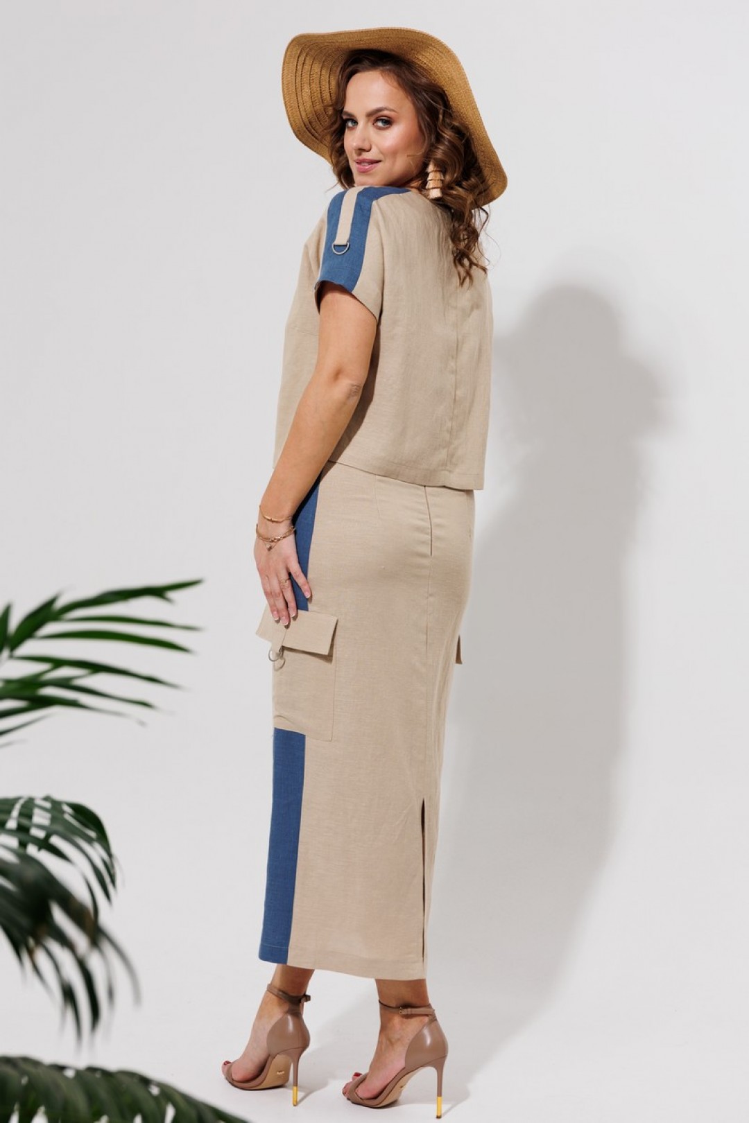 Костюм женский блузка + юбка прямого силуэта, выполнено из льна двух цветов.