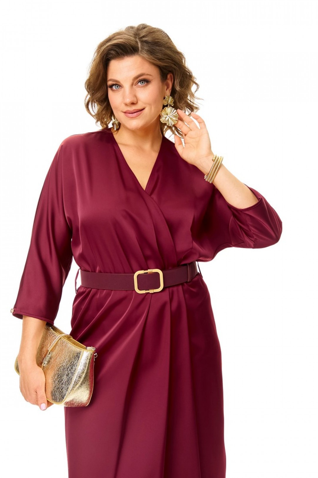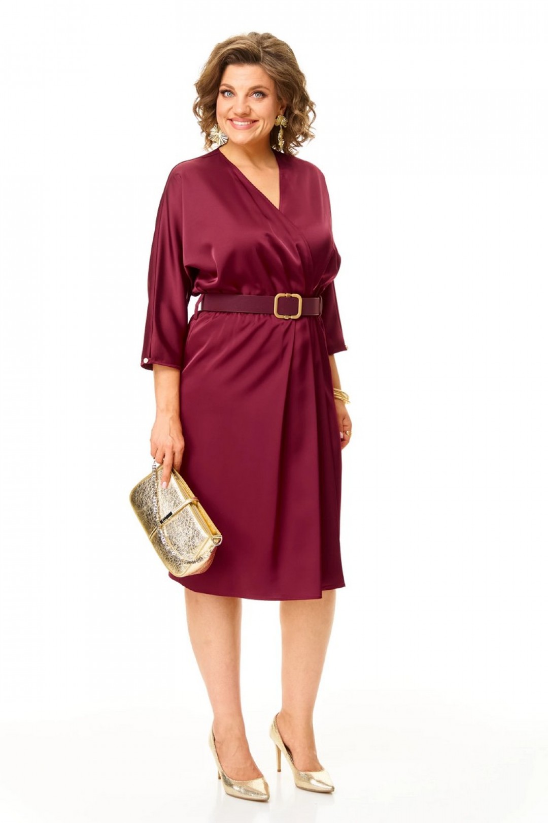Платье женское из сатина с матовым блеском. Платье приталенного силуэта. Покрой рукава цельнокроеный. Платье отрезное по линии талии. Лиф платья имеет V образное декольте, детали переда "на запах ", заложены несколько неглубоких складок. Нагрудных выточек нет. Внизу рукава небольшой разрез и декоративная пуговичка. Юбка платья так же выполнена "на запах" , на верхнем полотнище заложены несколько складок. Застёжки нет. Карманы в боковых швах. Лиф спинки со средним швом. Спинка юбки без шва. Платье без подкладки.