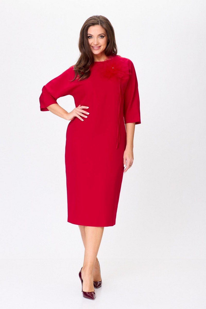 Элегантное красное платье полуприлегающего силуэта добавит изысканности вашему гардеробу. Изделие с округлым вырезом горловины и рукавами 3/4 дополнено спущенными плечами для современного образа. Практичная деталь в виде карманов по боковым швам обеспечивает удобство и функциональность. Платье выполнено в ярком оттенке красного, что делает его идеальным вариантом для торжественных моментов или деловых встреч. Украшение в комплекте подчеркнет ваше чувство стиля и добавит изюминку в общий вид.