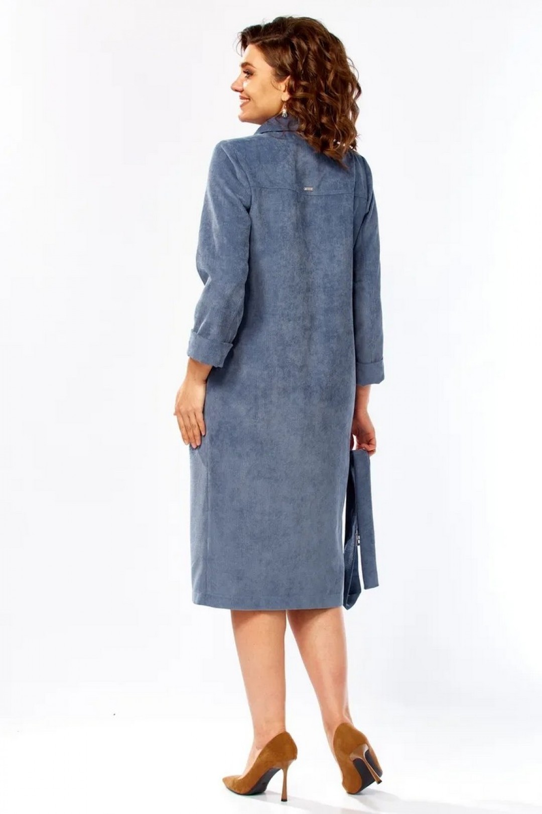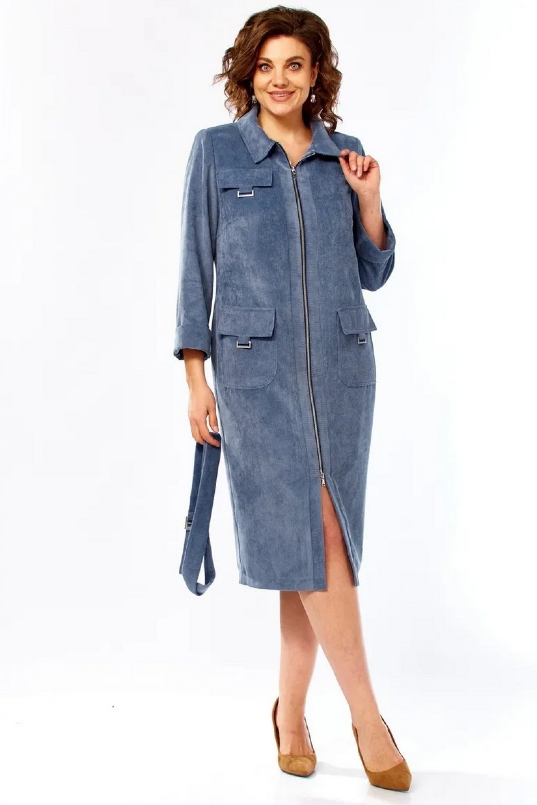 Платье женское, без подкладки, свободного силуэта. Воротник отложной, рукав втачной длины 7/8. Спереди застежка-молния, накладные карманы с клапаном с декоративными полукольцами. Спинка с кокеткой с декоративным пришивным элементом.