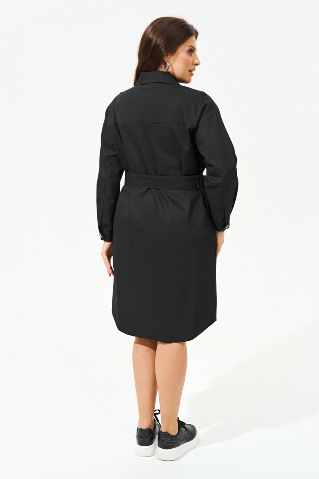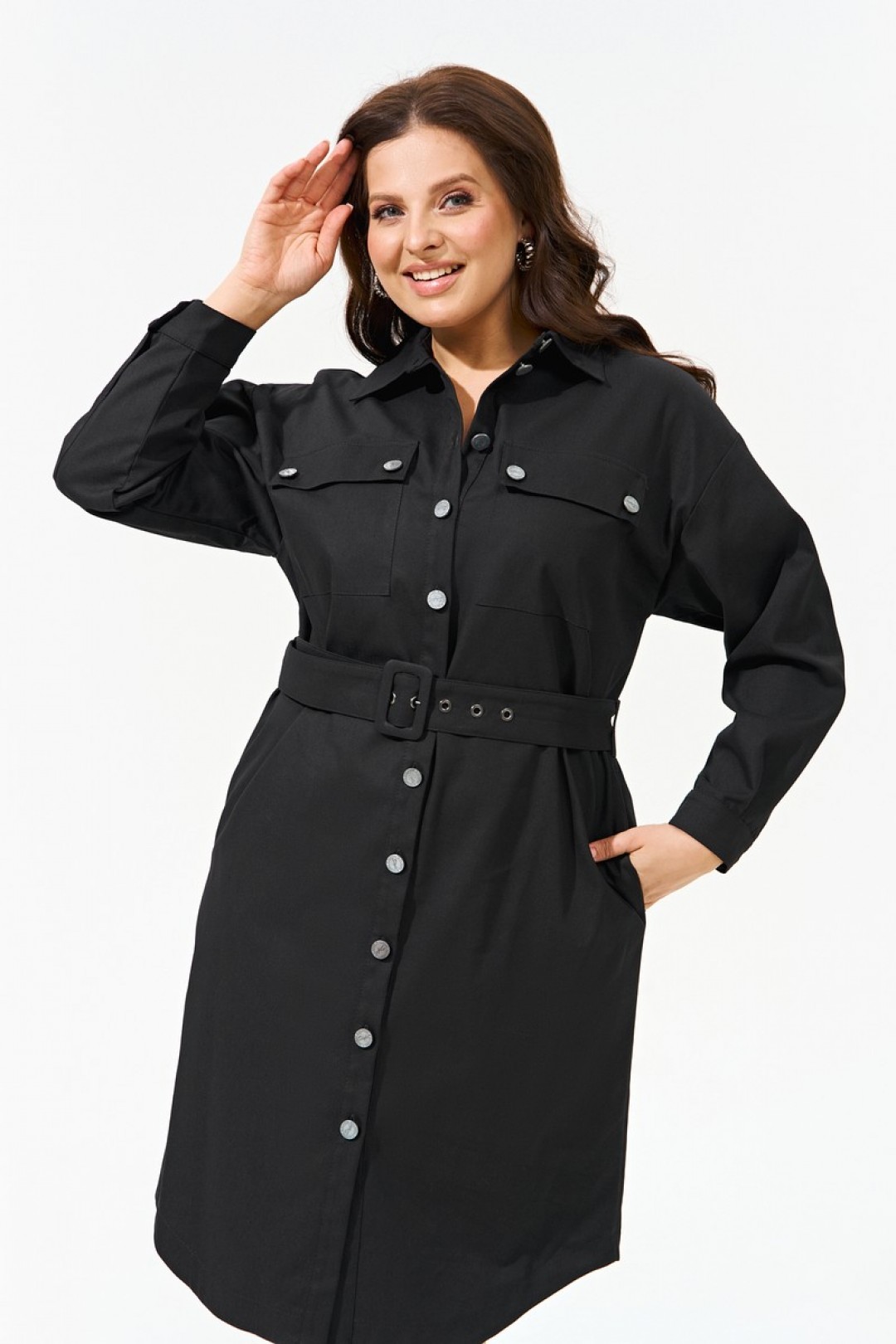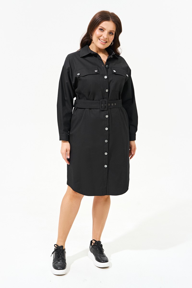 Джинсовое платье-рубашка свободного силуэта с функциональными накладными карманами по переду и в боковых швах, рукава с манжетами со спущенной линией плеча, воротник рубашечный, застежка-планка на петли и пуговицы. В комплект входит съмный пояс из основной ткани. Изделие можно носить как платье, так и как легкий тренч, плащ. Материал при правильном уходе не теряет своих свойств.