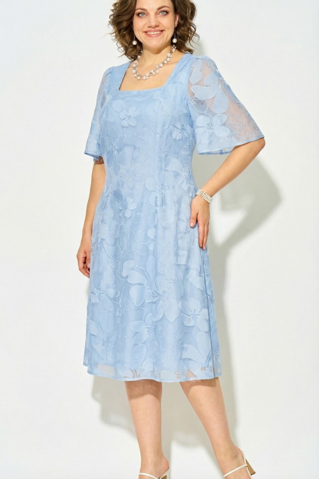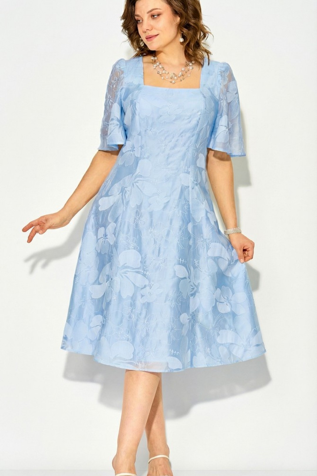 Летнее платье - это неизменный атрибут сезона отпусков, а также жарких городских будней и романтических вечеров. Надев это нарядное платье длиной миди, каждая дама непременно окажется в центре внимания!