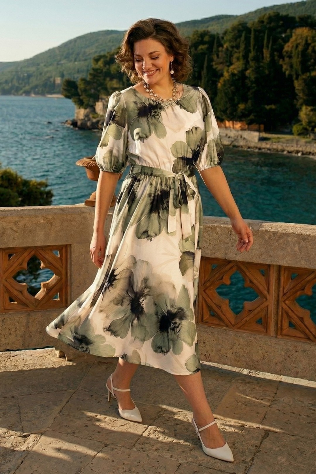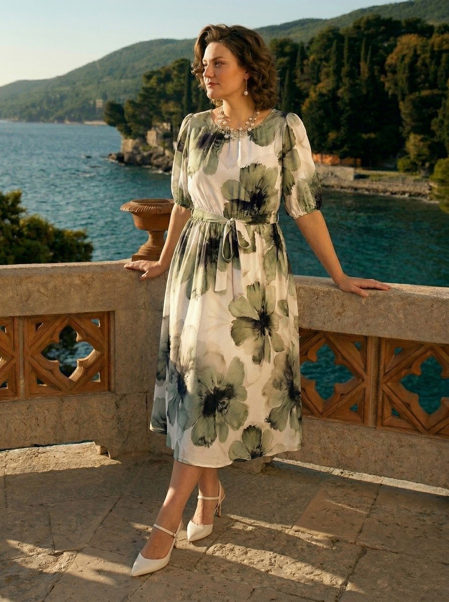 Это оригинальное платье с цветочным принтом в стиле батика подходит как для повседневного выхода, так и для торжественных случаев, вдохновленных пинтерест. Длина – 130 см, рукав – 40 см