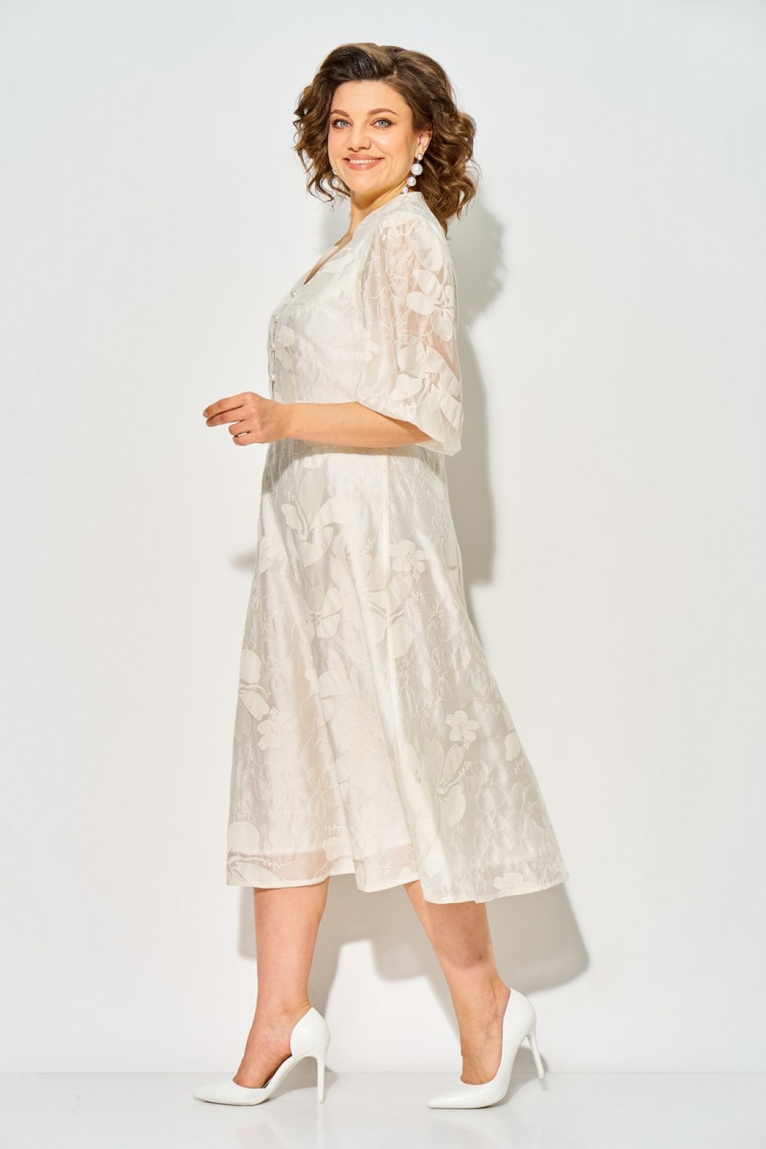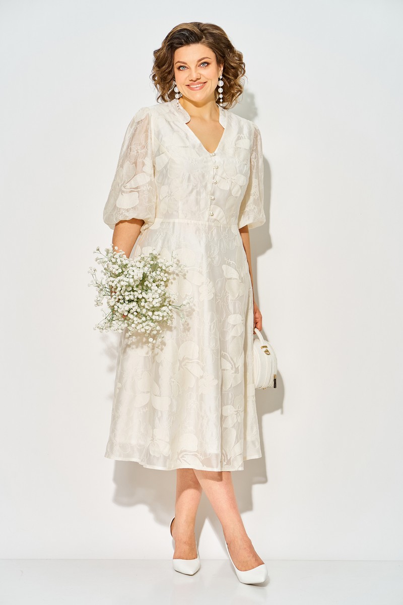 В преддверии торжественных мероприятий и праздников, мы приготовили для Вас это романтическое нарядное платье. Модель платья длины миди имеет углубленный V-образный вырез с навесными пуговками в виде жемчуга. По талии платье отрезное с расклешенной юбкой. Рукав фонарик, присборен на резинке по низу. Модель на хлопковой подкладке. По спинке предусмотрена потайная молния. Длина – 120 см, рукав – 45 см