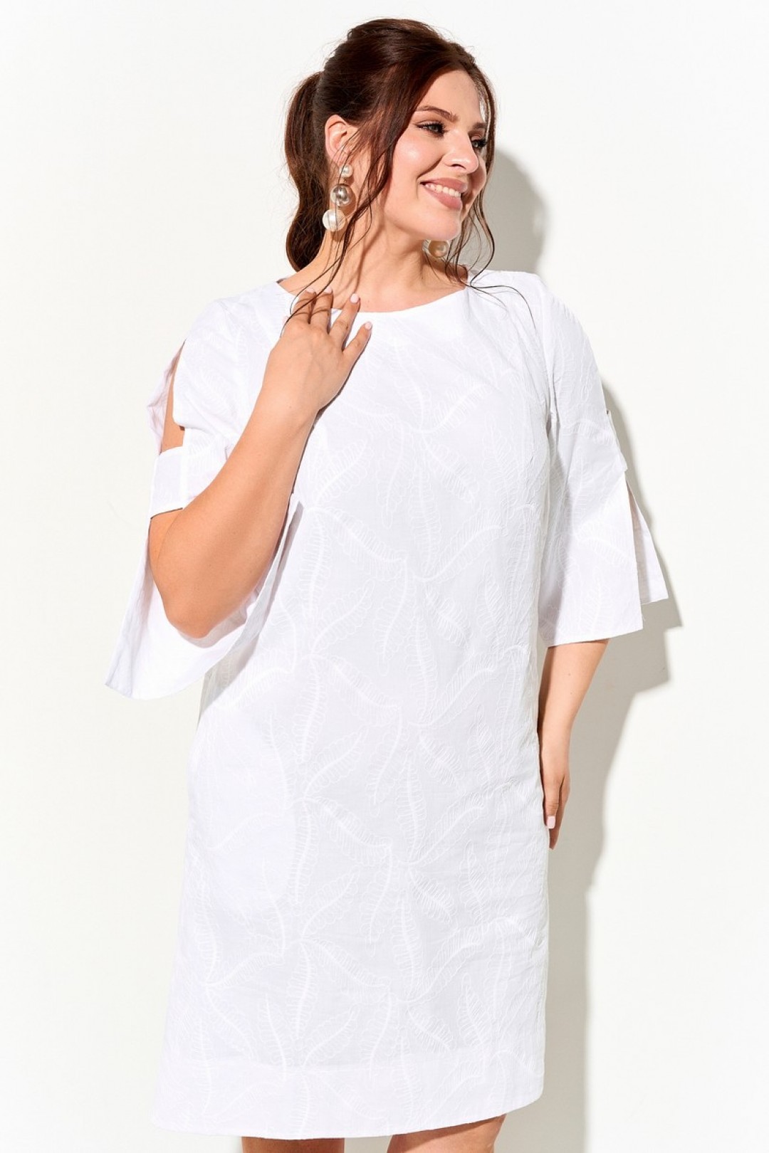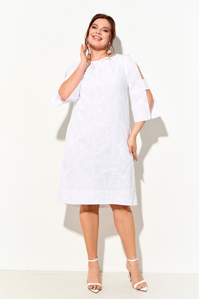 Платье свободного силуэта выполнено из ткани ришелье на хлопоковой отлетной подкладке, рукава втачные с разрезами до низа и вставкой по центру рукава, карманы в боковых швах. Спинка со средним швом, застежка на потайную молнию. Платье полностью соответсвует заявленному размеру. Пользуйтесь таблицей замеров готового изделия. Уход за натуральными тканями: - рекомендована бережная стирка притемпературе не выше 30 градусов; - глажение при температуре прессующей поверности 110 градусов.
