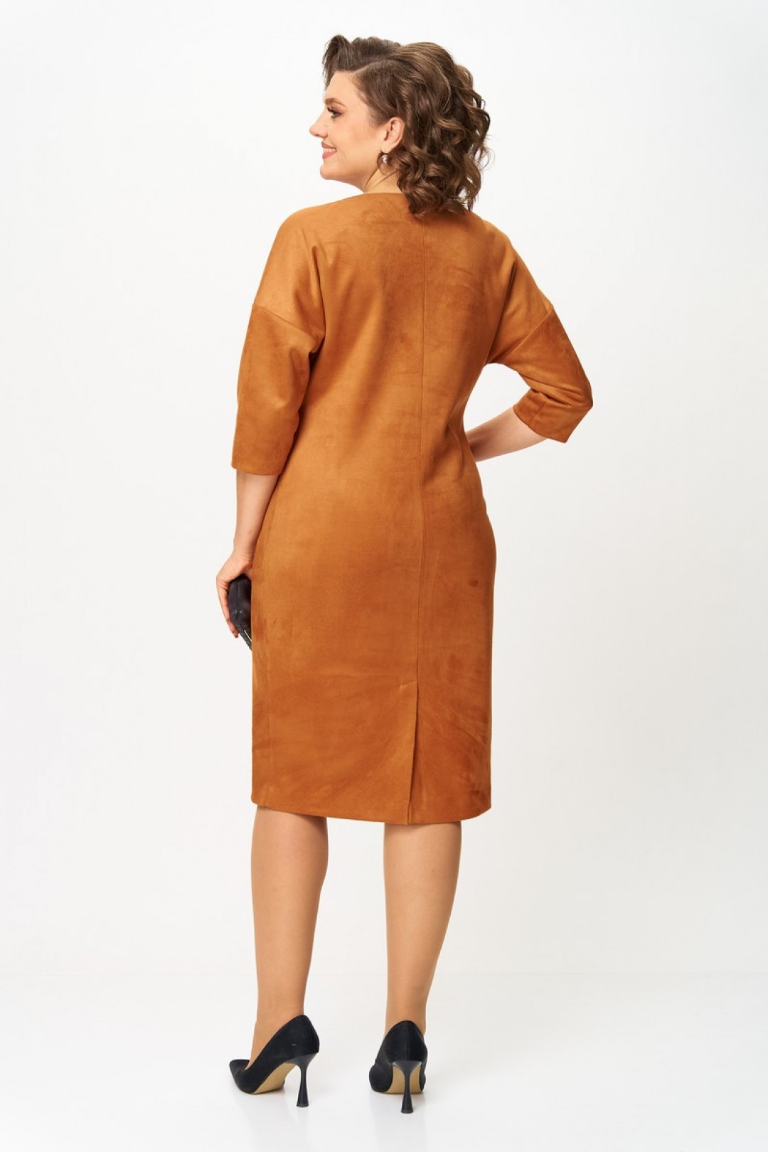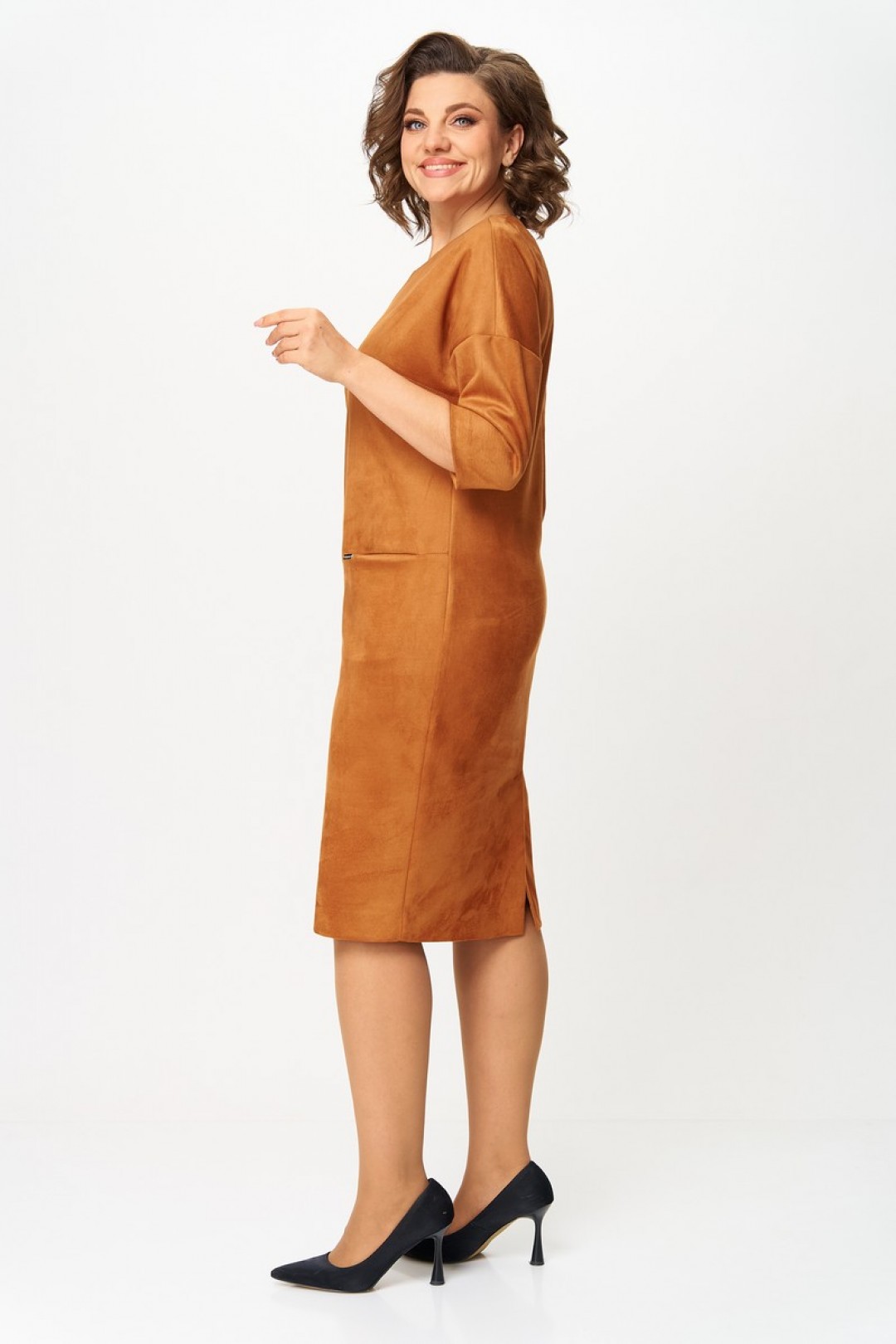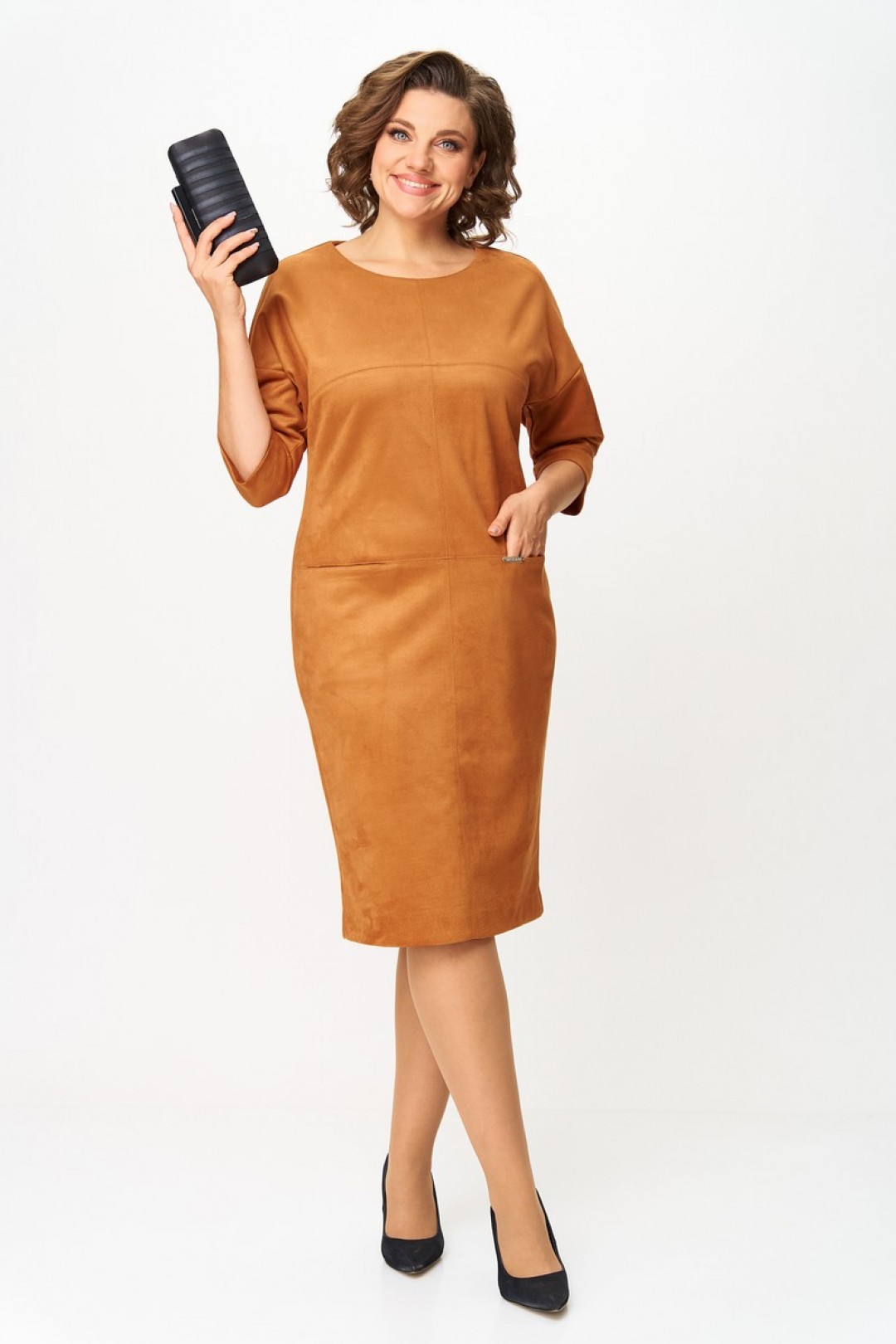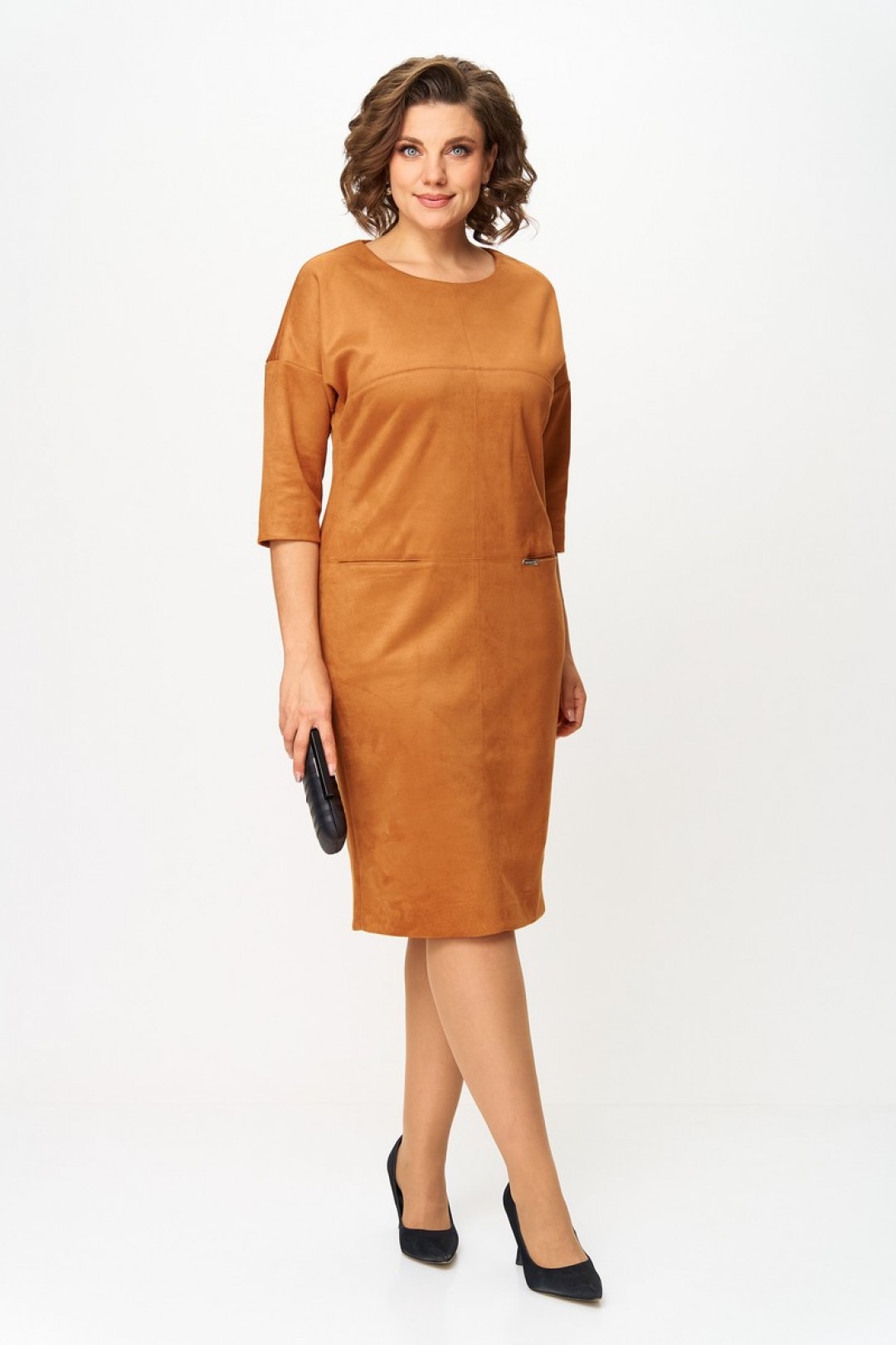 Элегантное платье прямого кроя из мягкого трикотажа с имитацией замши, приятной к телу. Приспущенный рукав 3/4, аккуратные декоративные швы и длина до колена визуально стройнят, а в передних швах спрятаны удобные карманы.