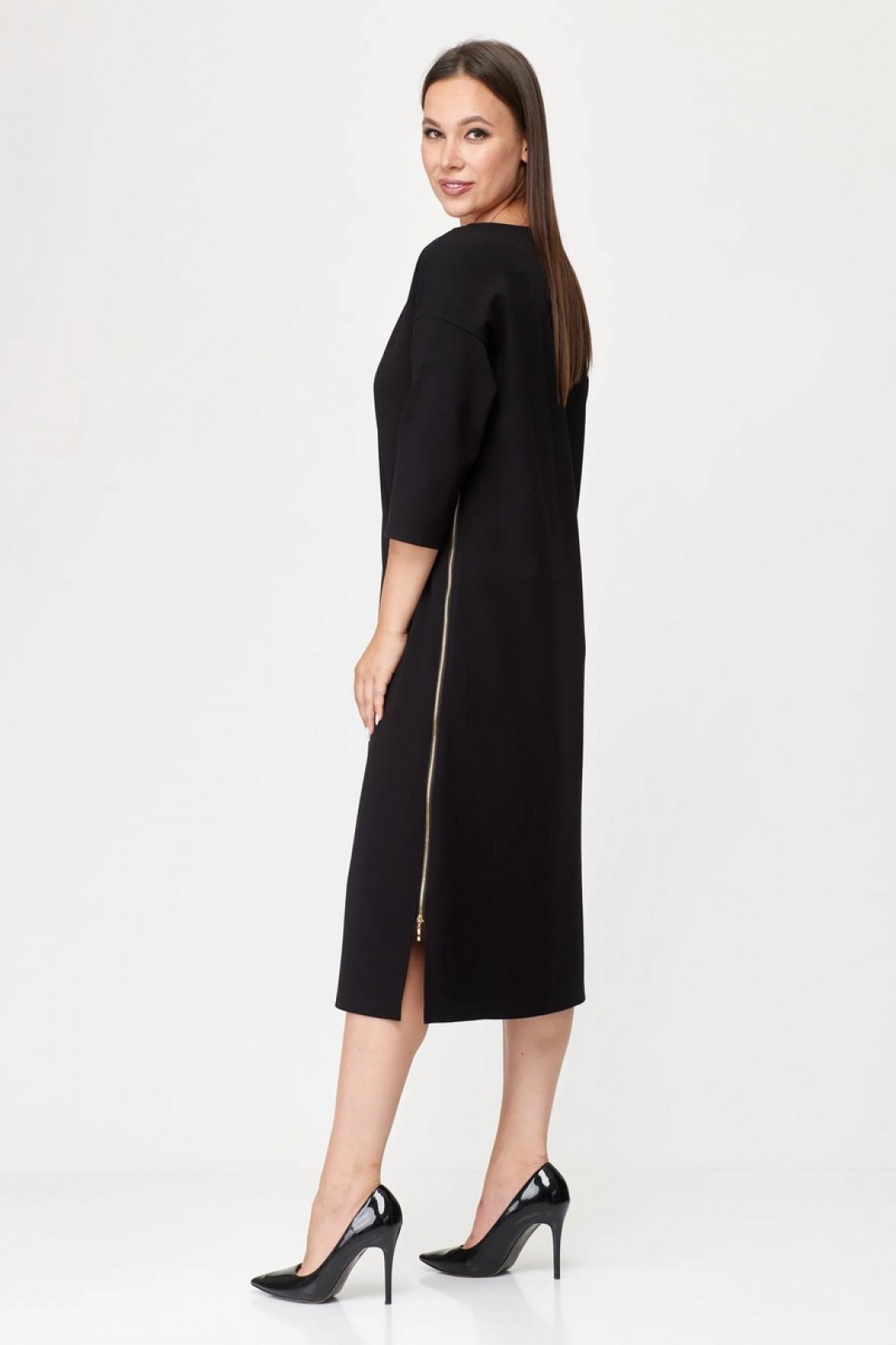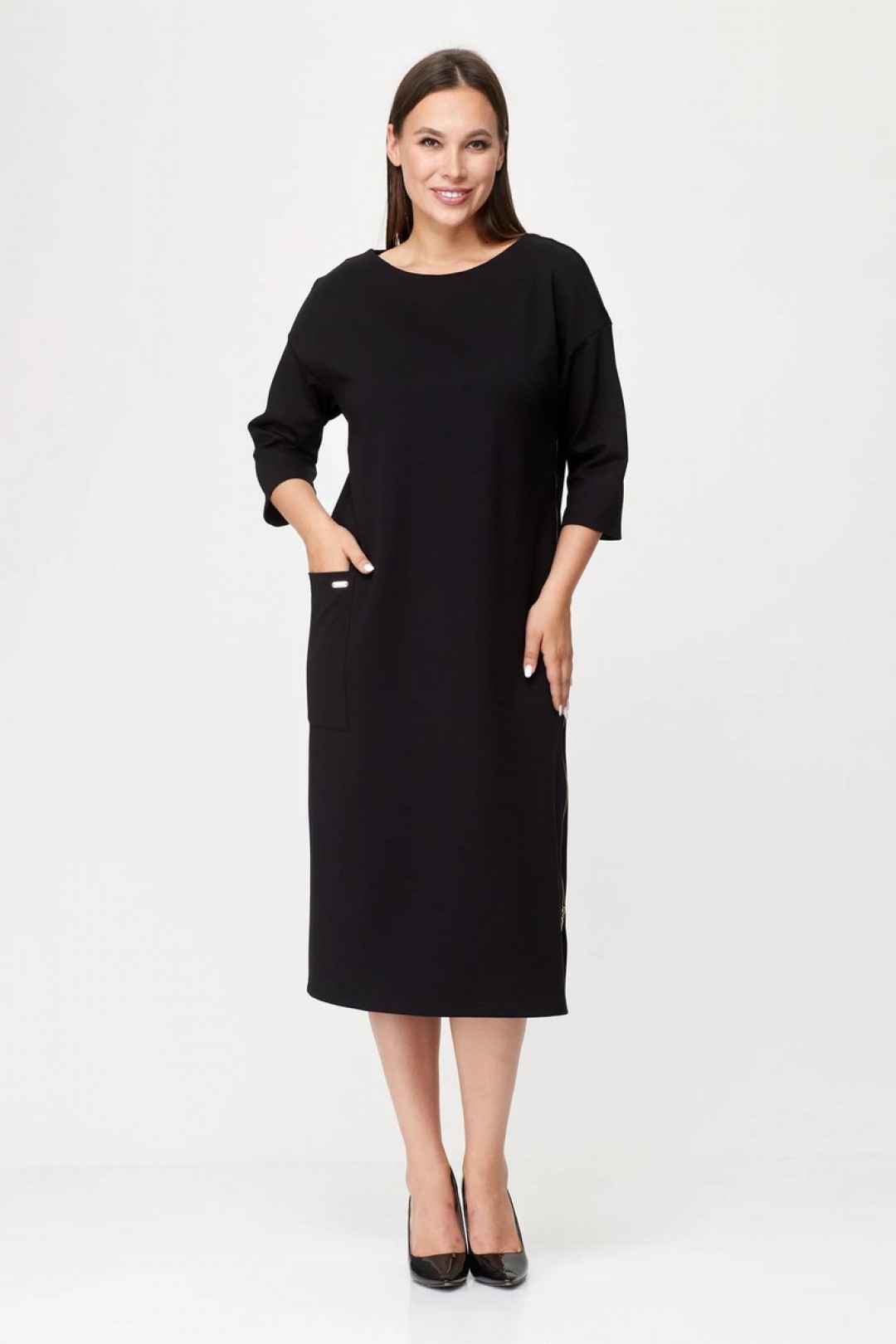 Эффектное и актуальное трикотажное платье. Изделие прекрасно подходящее для повседневной жизни, но также можно стилизовать под праздничный образ. Комфортный, прямой силуэт мягко сядет по фигуре и не будет сковывать ваших движений. Платье выполнено из приятного на ощупь трикотажа средней плотности, имеет спущенный рукав - длинной 7/8, по переду изделия карман. Украшением платья служит боковой разрез, который оформлен молнией. Платье прекрасно сочетается разной по стилю обувью.