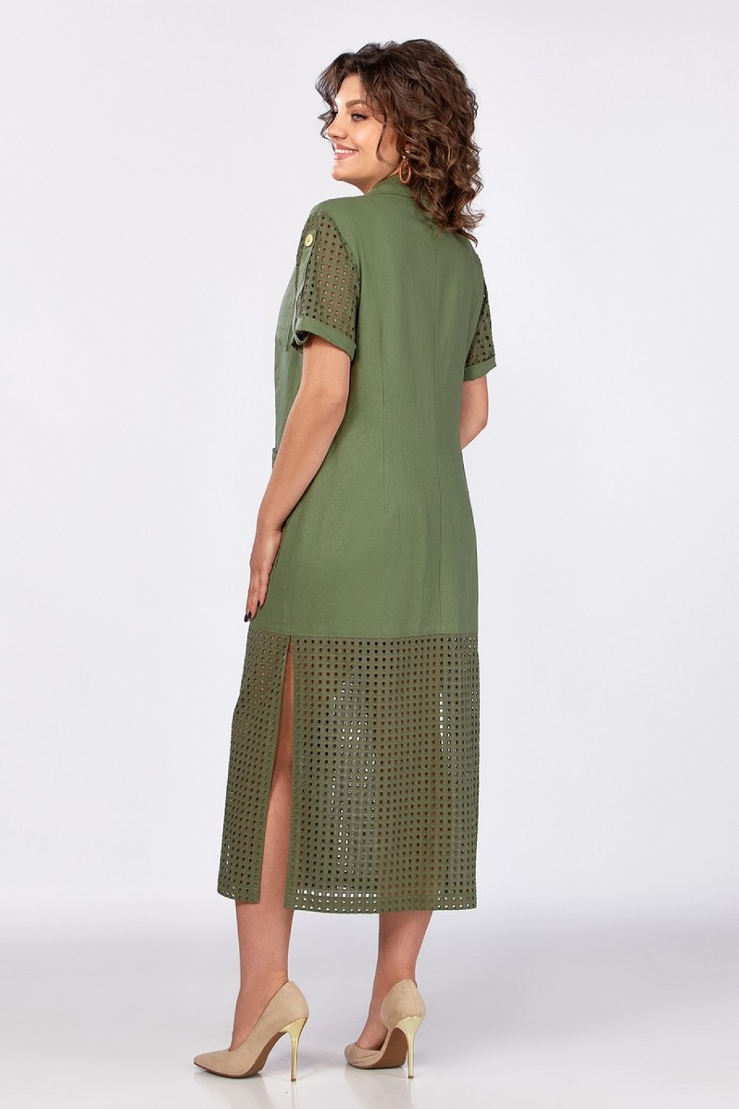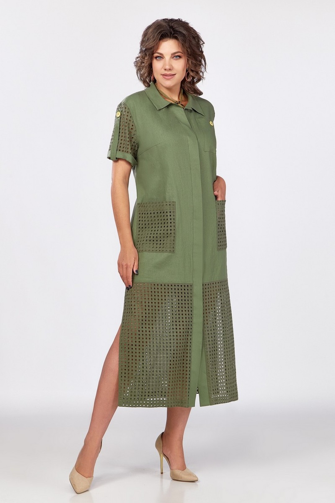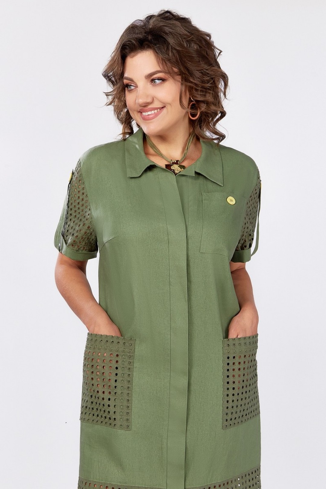 Летнее платье прямого покроя, выполненное из льна и хлопка с вышивкой. Полочка с застежкой на планку с потайной застежкой на пуговицы. Горловина обработана втачным воротником. Также на полочке обработан накладной карман по линии груди из льна, и по линии бедер два накладных кармана из хлопка с вышивкой. Нижняя часть платья также выполнена из хлопка с вышивкой, с боковыми разрезами, сто придает платью эффектности. Рукав втачной, из хлопка с вышивкой, по низу на манжете и с патой из льна с застежкой на пуговицу. Спинка выполнена из льна, со средним швом и вытачками, нижняя часть юбки также как выполнена из хлопка с вышивкой. Простое, но в тоже время очень эффектное платье из натуральных тканей, отличный вариант для летнего образа!