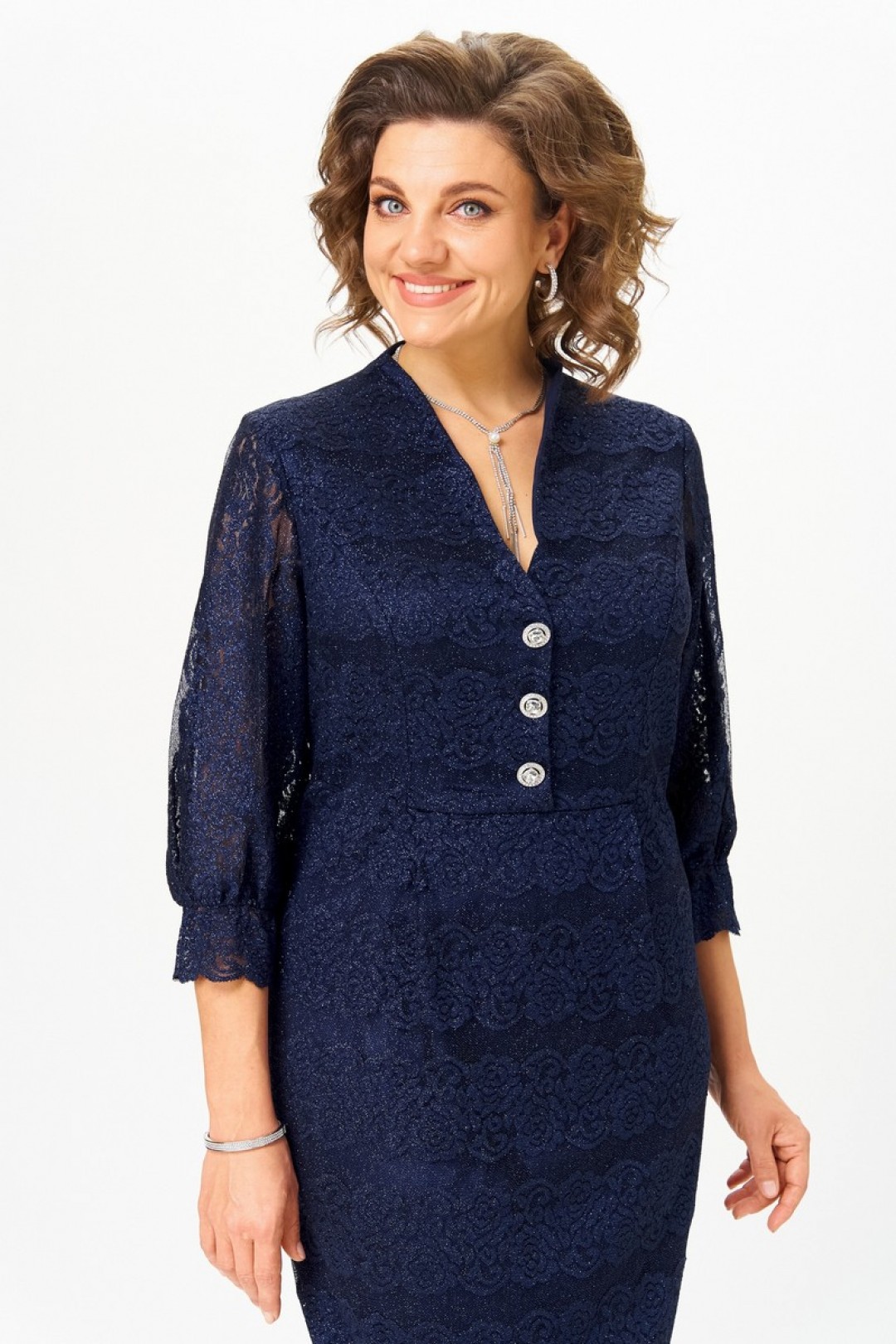 Нарядное женское платье полу-прилегающего силуэта, выполнено из гипюра с глитером и текстиля. Лиф платья отрезной по линии талии, с вытачками, на лифе обработана застежка на петли-пуговицы. Юбка платья прямого покроя, выполнена из гипюра с глитером. Спинка выполнена из однотона (текстиля), со средним швом и вытачками, в среднем шве по низу шлица. Рукав выполнен из гипюра с глитером, расклешенный к низу и присборен на манжет из гипюра. Элегантное платье отличный выбор для вашего образа на любое мероприятие!