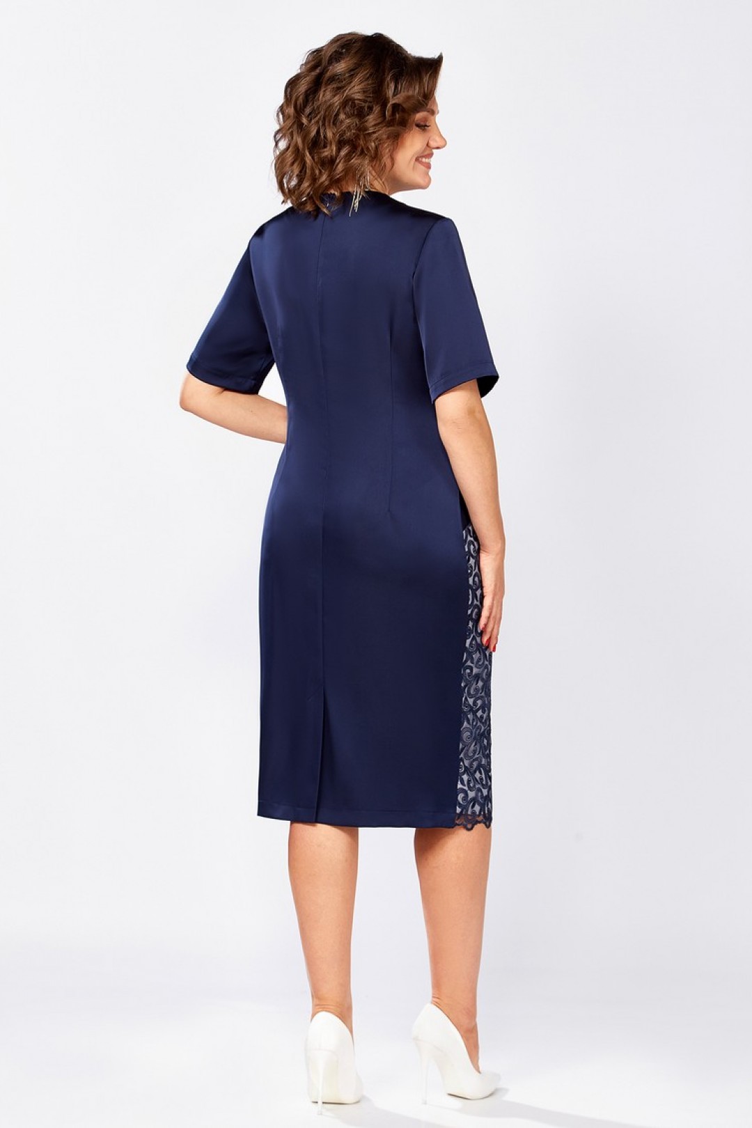 Элегантное женское платье полу-прилегающего силуэта, выполнено из атласа и кружева. На полочке из кружева, обработан втачной пояс из атласа, со складками и втачным элементом, декорированным стразами. Горловина округлой формы, на обтачке, на лифе обработаны кокетки из атласа. Юбка платья выполнена из кружева, заужена к низу. Спинка выполнена из атласа, со средним швом и полурельефами, рукав втачной, укороченный, также из атласа. Нарядное, женское платье с эффектным акцентом по линии талии, отличный выбор для торжественных мероприятий!