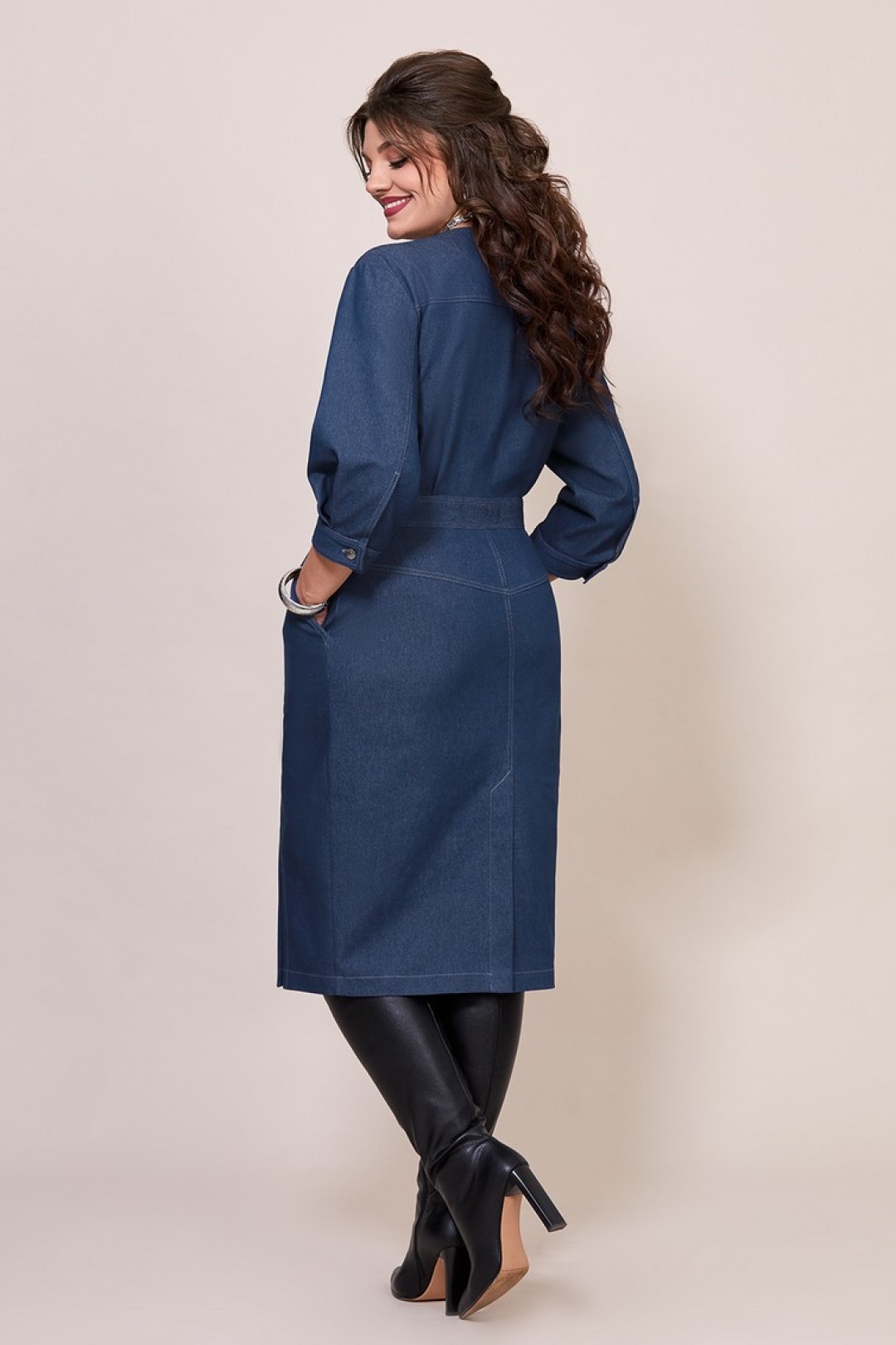 Стильное, женское платье полу-прилегающего силуэта, выполнено из джинса. Лиф платья отрезной по линии талии, горловина V-образной формы, на обтачке, также на полочке обработаны клапаны. Юбка платья прямого покроя, вертикальными подрезами, также на юбке обработана двубортная застежка на петли-пуговицы. Рукав втачной, оптимальной длины, по низу на манжете, с застежкой на пуговицу. Спинка отрезная по линии талии, с втачным поясом, лиф с отрезной кокеткой, юбка также с кокеткой и средним швом. Стильное платье из джинса всегда будет актуальным в любое время года.
