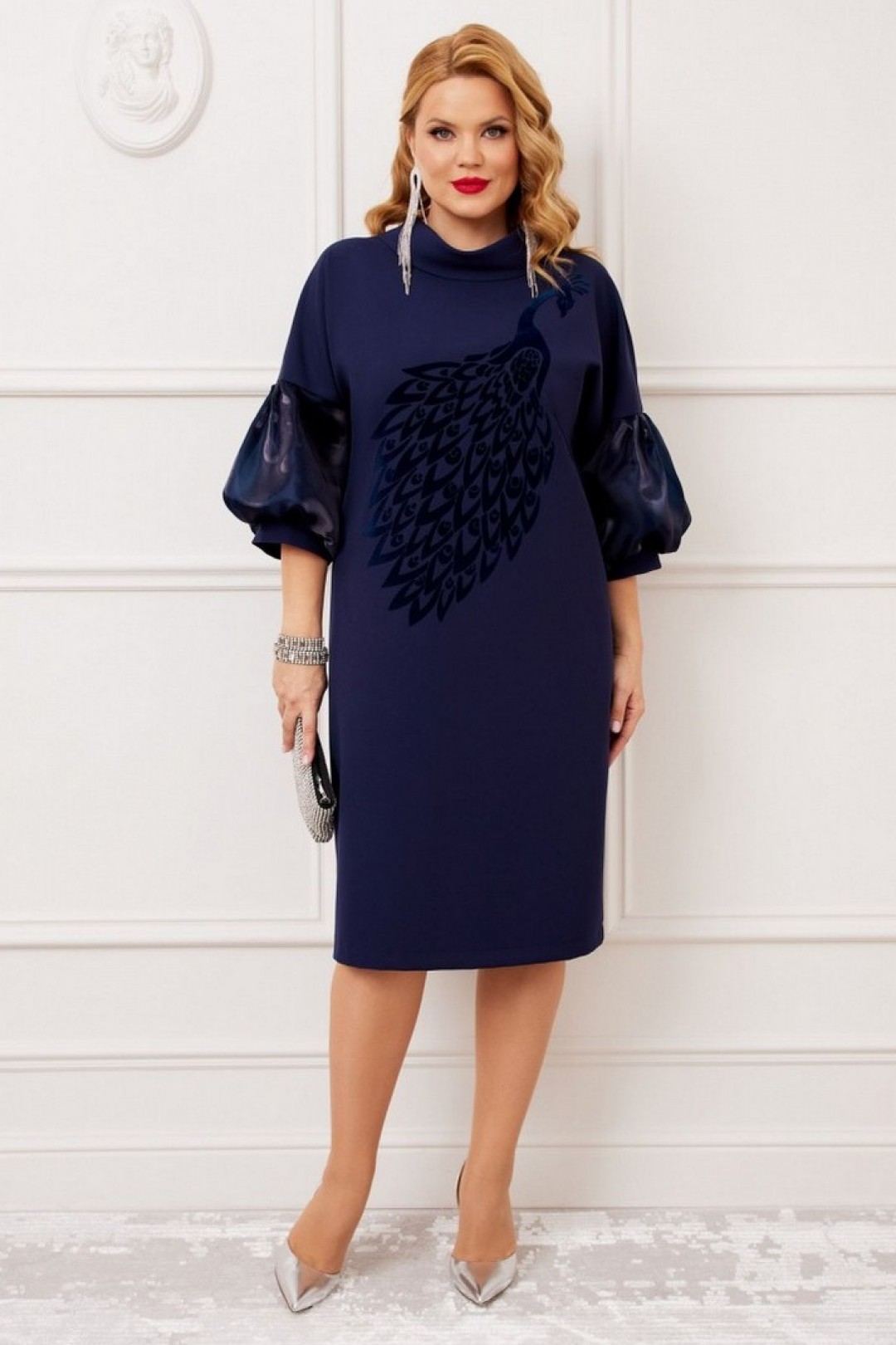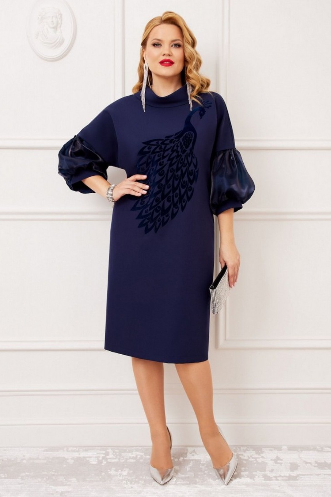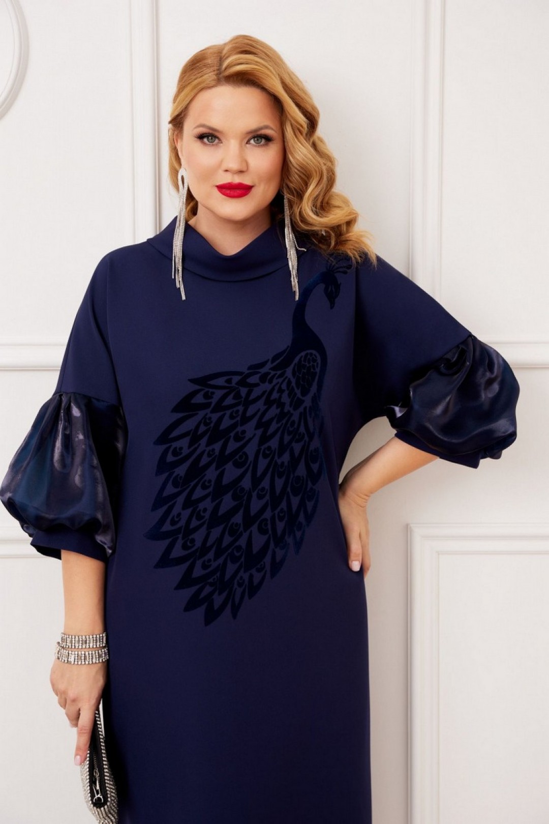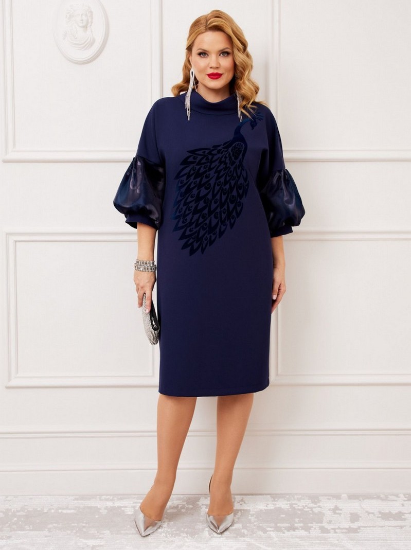 Роскошное нарядное платье, выполнено из плательной ткани Барби с добавлением вискозы. Платье полуприлегающего силуэта, по переду декорировано роскошной печатью Жар Птица, что придает платью особый шарм. Рукав спущенный, выполнен в стиле фонарик, с отделкой из органзы. Горловина платья выполнена в стиле хомут.