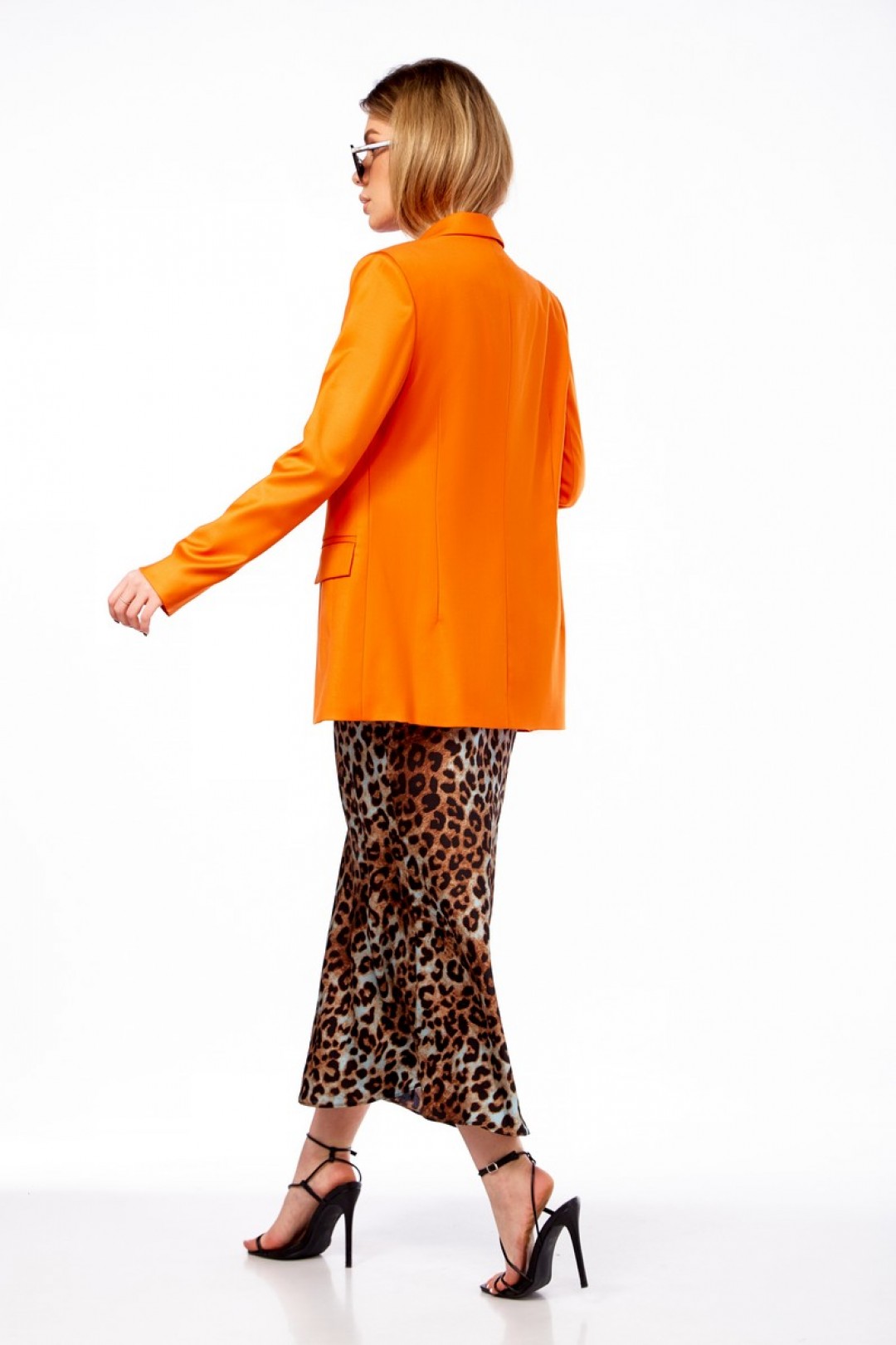 Стильный жакет, на подкладке, удлиненный, слегка приталенного силуэта с застежкой на пуговицу, по переду обработаны прорезные карманы с клапанами, слева в верху карман с листочкой.